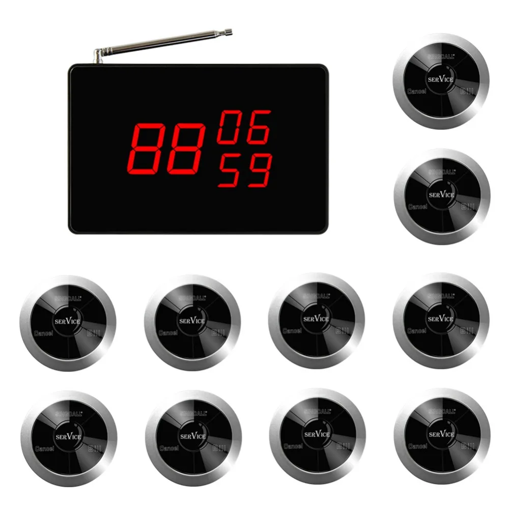 Беспроводная система вызова SINGCALL, кнопка вызова ресторана, 1 небольшой экран приемника с голосовым сообщением, 10 пейджеров с тремя кнопками