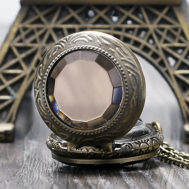 Новинка 2016, кварцевые карманные часы небольшого размера с бронзовым и коричневым стеклом, ожерелье под свитер для женщин и девушек