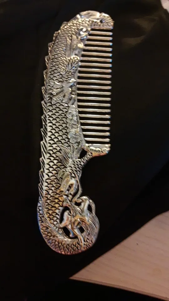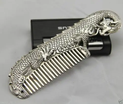 Старинные коллекционные вещи украшенный Miao Серебряный ручная работа резной дракон элегантный гребень украшение