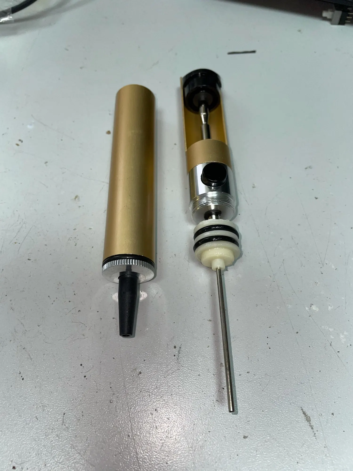 Отсос топчик. Приехал быстро. Весь металлический, детали подогнаны идеально. Две резинки в ручке отсоса, одна у наконечника. Работает отлично. В запасе + один наконечник.