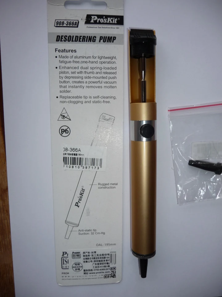 Я уже использовал этот инструмент много, и он работает хорошо. Проблема только в том, что когда наконечник полон припоя, вы больше не можете запускать насос, и вам нужно разобрать все, чтобы очистить его. Довольно скучно, и вам придется сделать это довольно несколько раз, когда вы будете очень довольны. Кроме того, нет никаких жалоб, это отличный инструмент. Я также заказал новый наконечник для моего старого насоса, и это правильный размер, он идеально подходит, хотя это не совсем та же модель. Заказ получен в течение 19 дней. Счастливый клиент, спасибо.