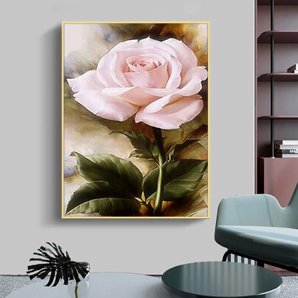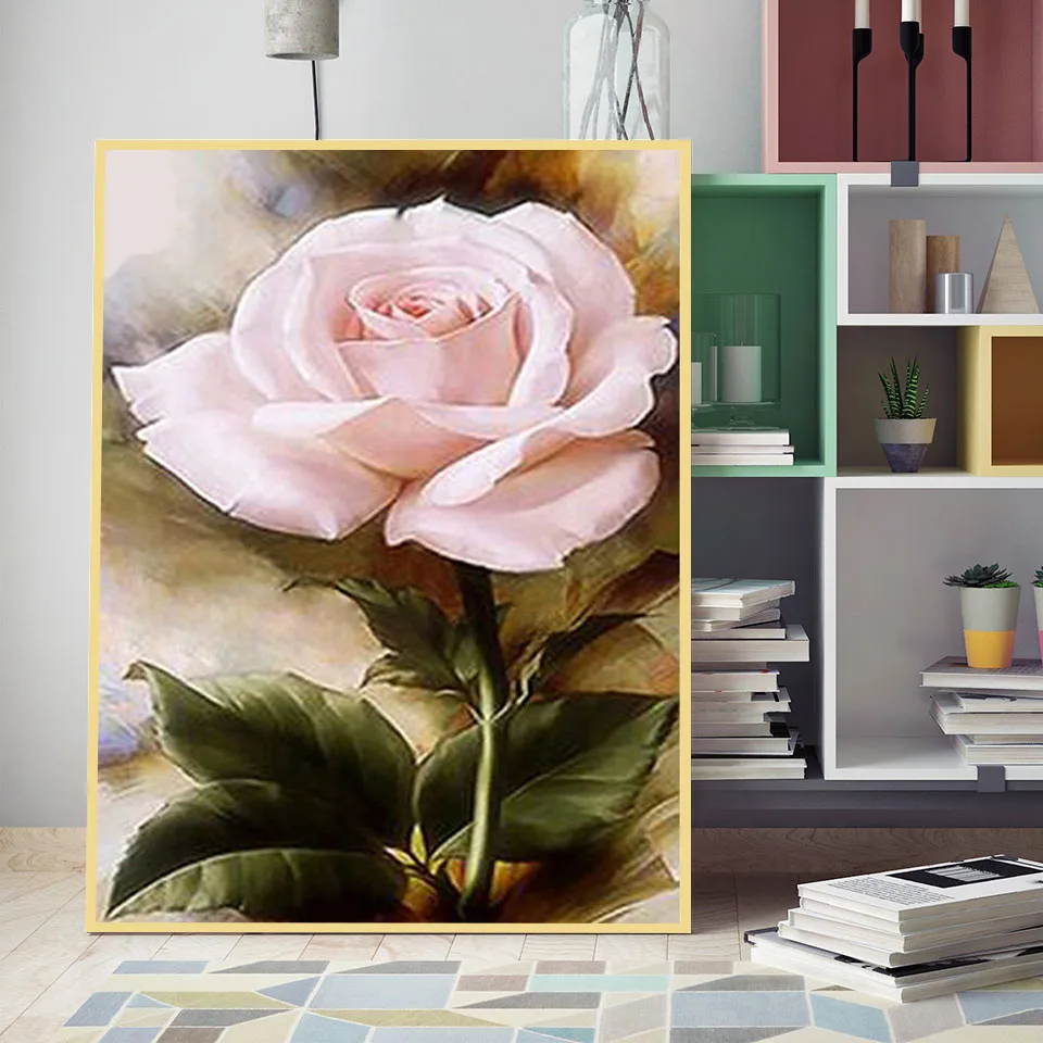 Полная выкладка Diy Набор для рисования с круглыми камнями и полотном картина роза вышивка крестиком Мозаика полный 100% крышка с вышивкой "розовая роза" Алмазная Вышивка Цветы