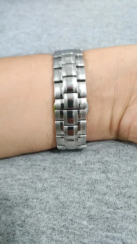 Очень хорошие часы. Регулировка браслета была легкой с помощью инструмента регулировки. Позволяет увидеть, как он работает, первое впечатление является твердым. Доставка занимает немного больше времени, так как заказ был сделан до праздников, но он был в кронштейне 10 дней, что нормально.