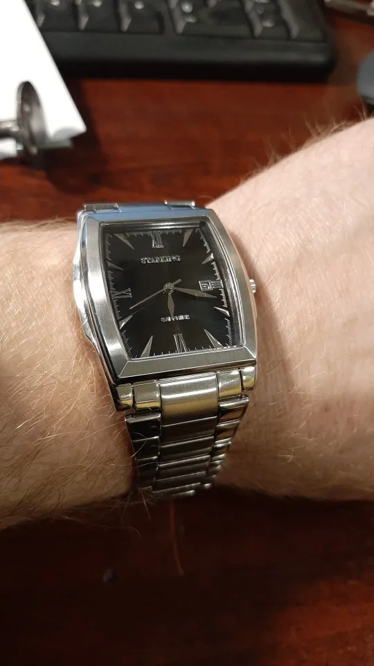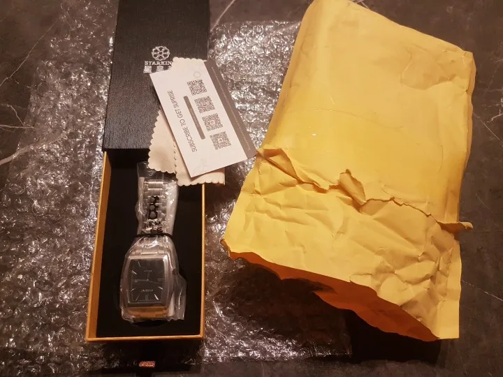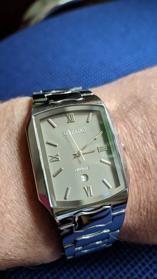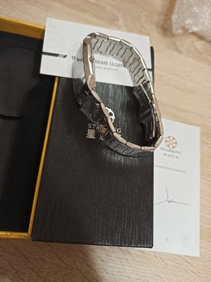 Доставка быстрая, сами часы хорошие, красивые и качественные. Корпус и браслет похоже действительно нержавейка, стекло точно сапфир (проверил тестером DS). Но это только у модели, которую я купил - BM078. У BM060 непонятно, эта модель меньше по размеру и надписи "sapphire" на цифере нет. Немного не понравились основные стрелки, они абсолютно плоские и без люма. Граненые смотрелись бы гораздо лучше. Но в целом за 22 бакса, эти часы просто находка - сапфир, нержавейка, интересный дизайн. Не зря starking хвалят на часовых форумах. Надо будет обязательно поизучать остальные модели этой фирмы.