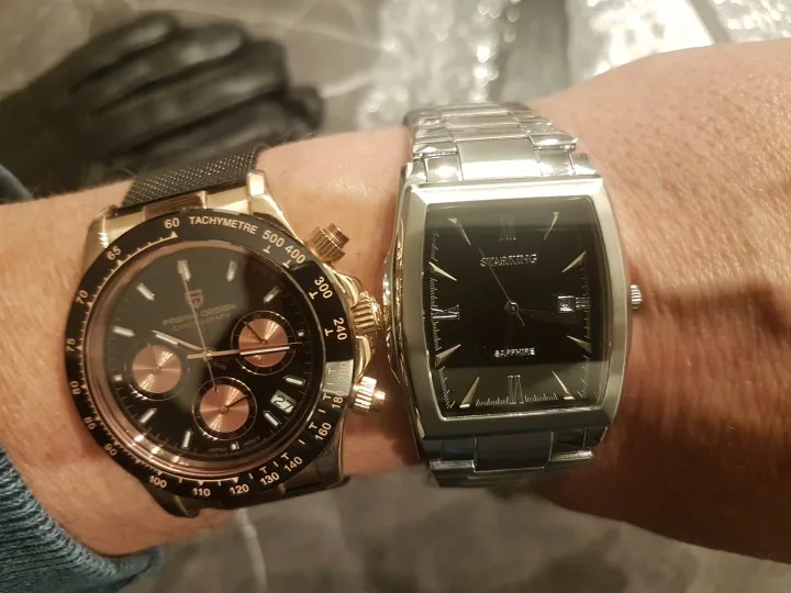 Очень хорошие, качественные часы. Формат сдержанный. Следите за большими пальцами, Корона очень маленькая. Доволен своей покупкой.