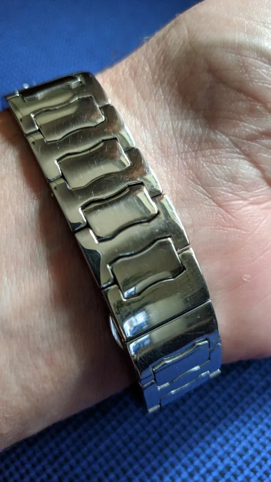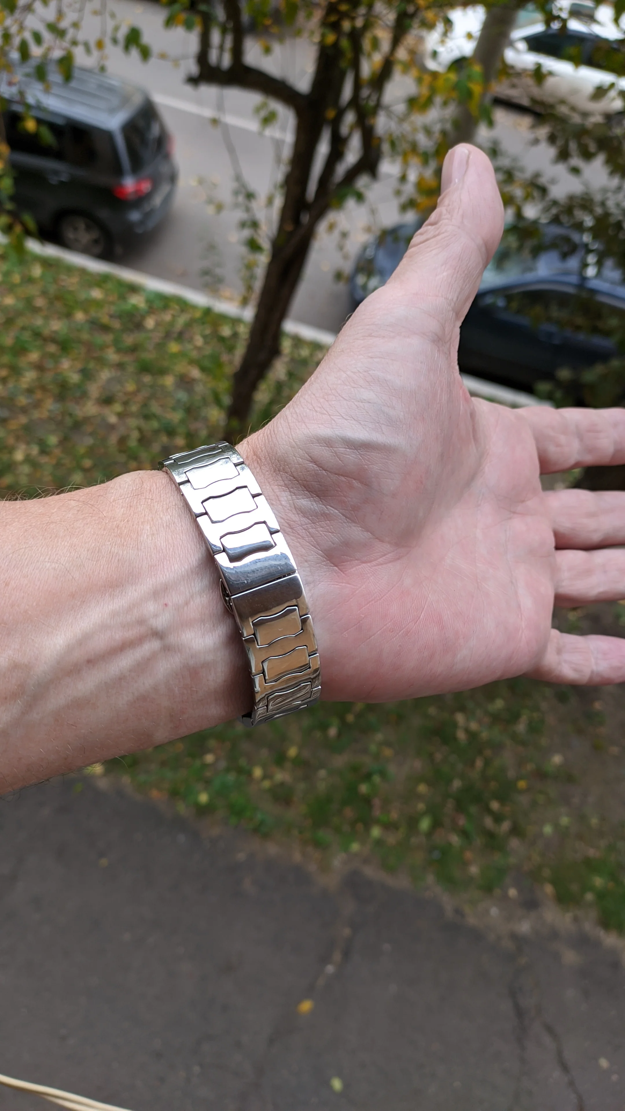 Имеется один дефект. Один из шарниров браслета не сгибается.