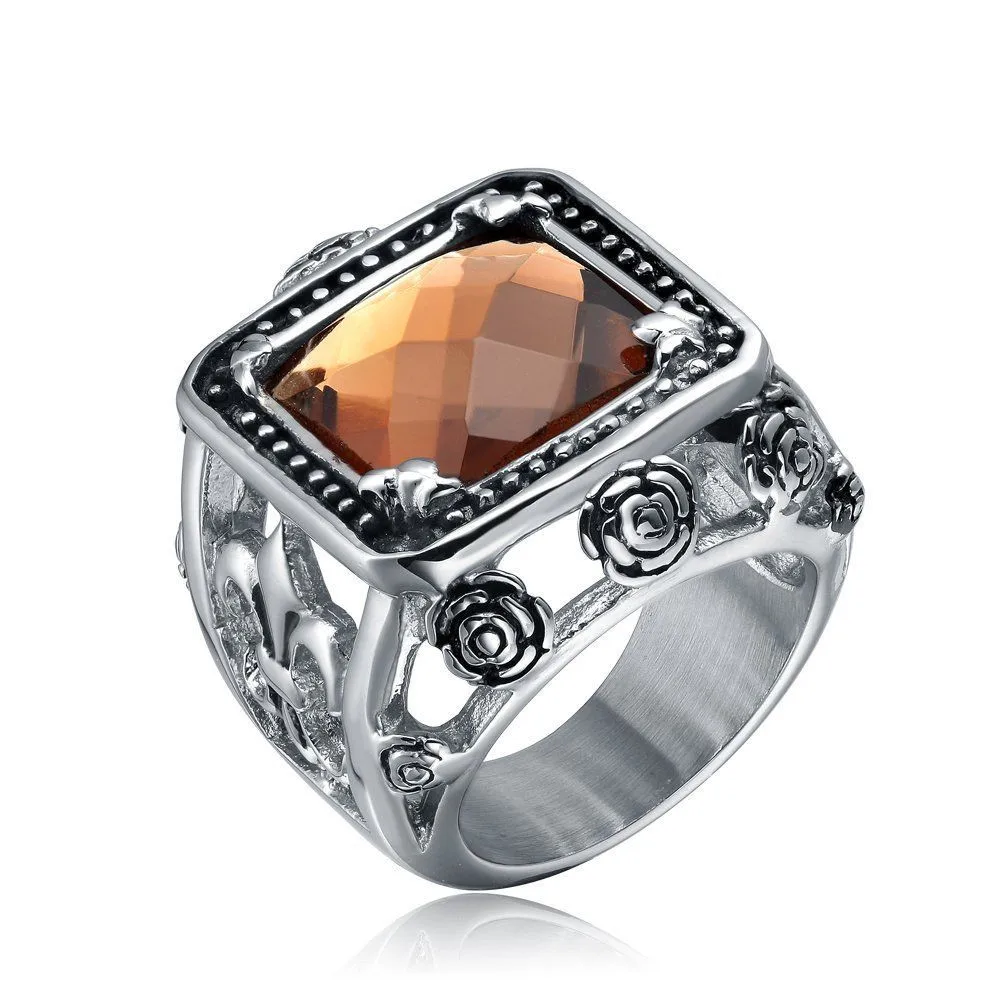 Мужское кольцо из нержавеющей стали, коричневое кольцо с фианитом в готическом стиле, Винтажное кольцо в стиле хип-хоп, рок, панк, модные ювелирные украшения для мужчин