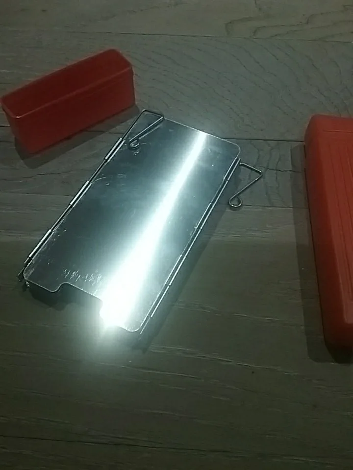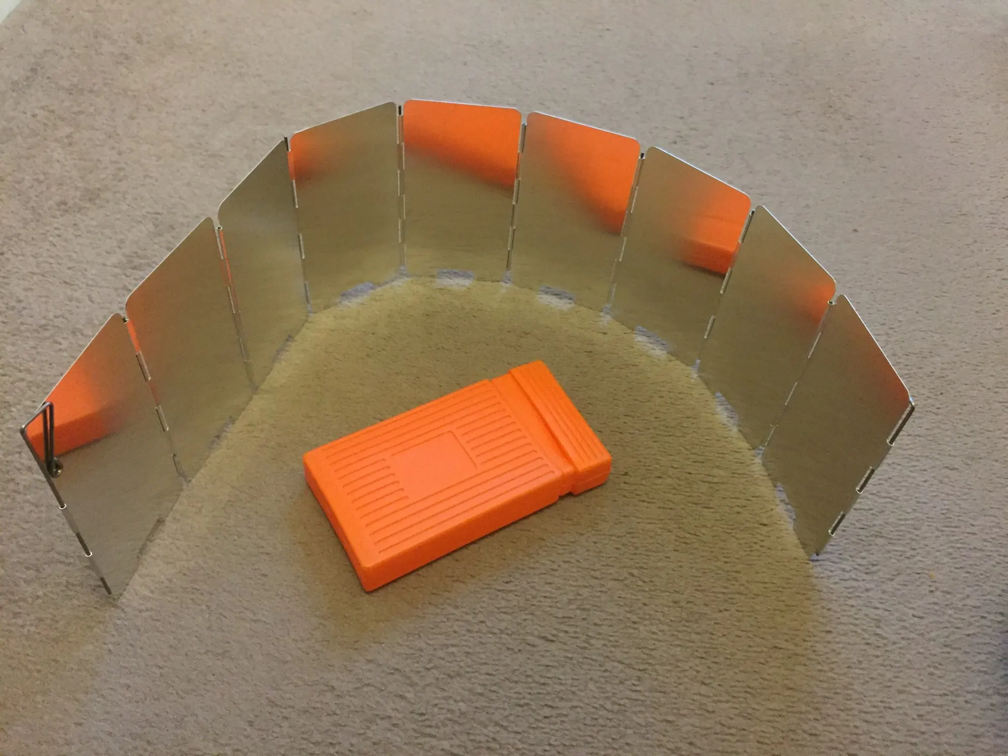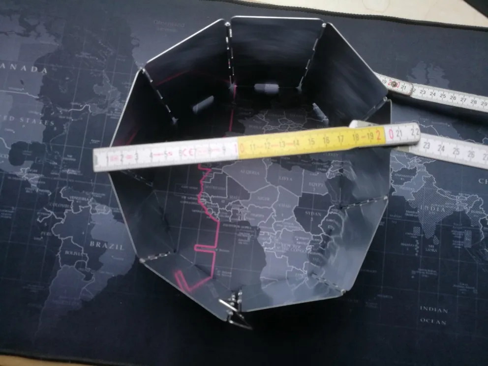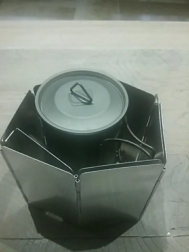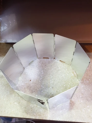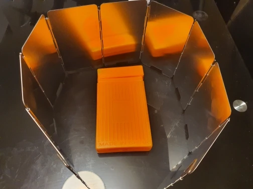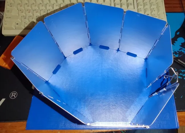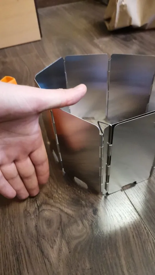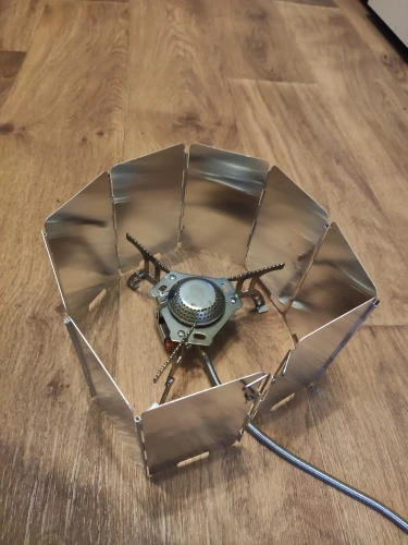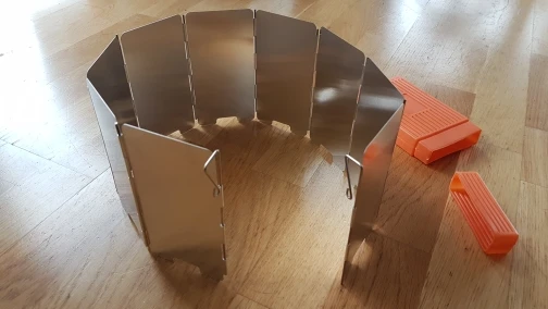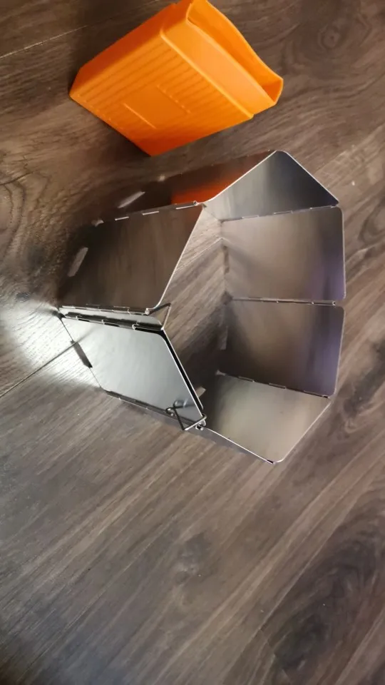 на удивление лёгкая защита от ветра, проволочные края можно воткнуть в землю. Весьма неплохо, складывается в маленькую коробочку.