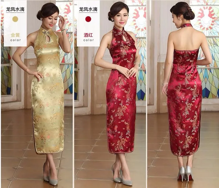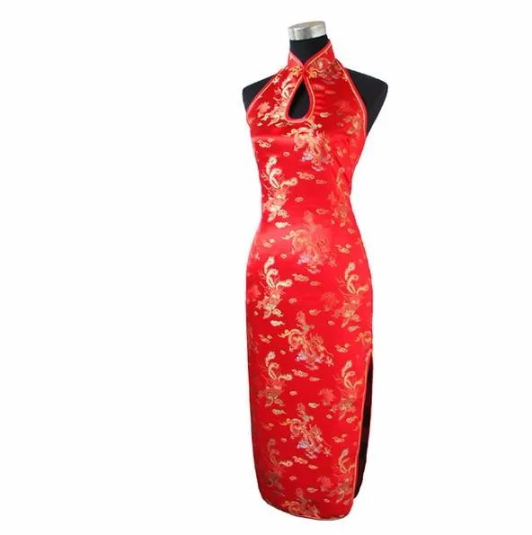 Сексуальное бордовое традиционное китайское платье с открытой спиной, длинное платье-халтер, Ципао, новинка, капельный костюм S M L XL XXL XXXL WC025