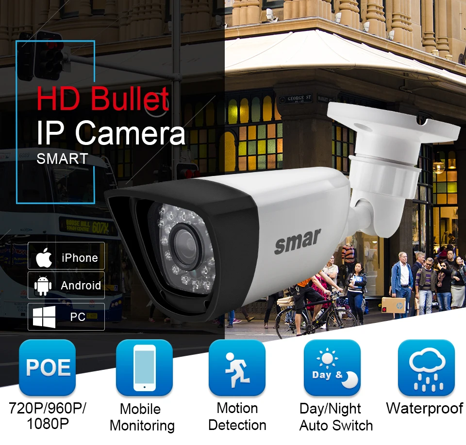 1*720P 960P 1080P наружная пулевая ip-камера POE