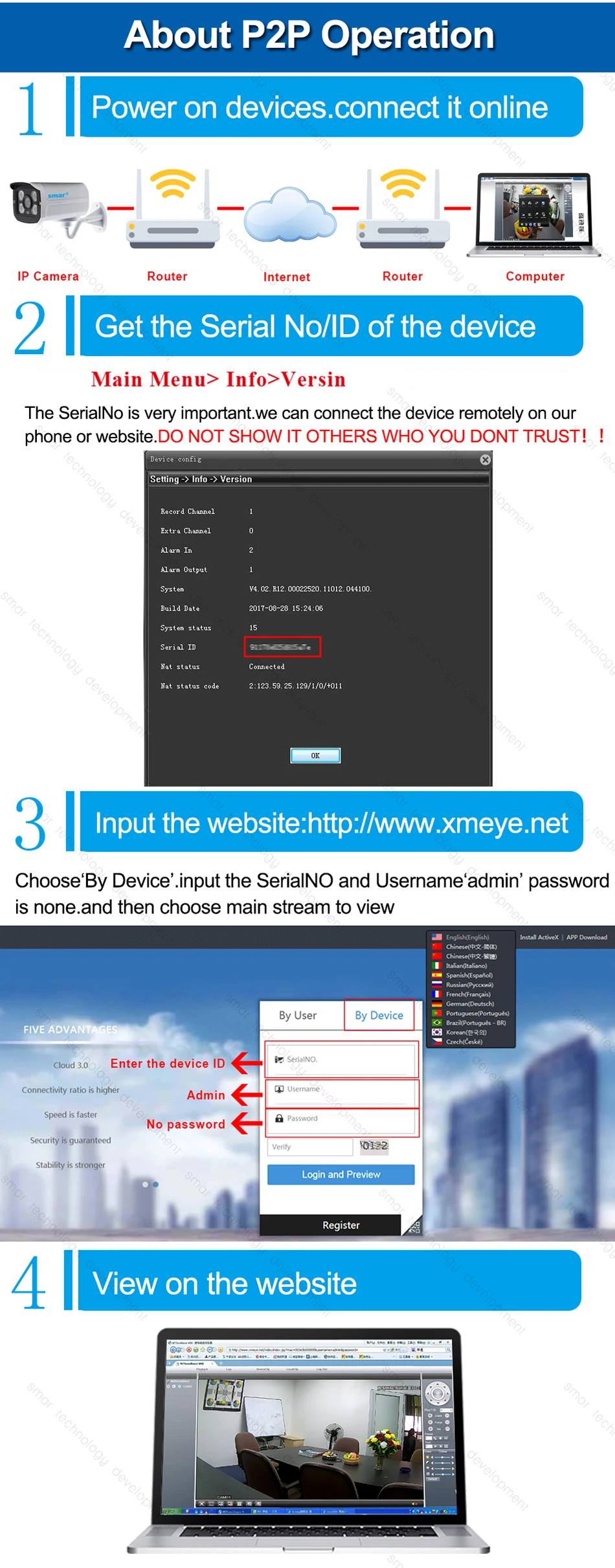 4. Используя клиент XM CMS, поддерживает P2P remote, не нужно открывать порты маршрутизатора без сопоставления портов, Легкий Удаленный доступ.