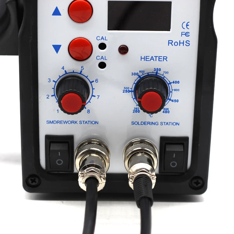 Переделка блока спецификации: Мощность: 580 Вт Устойчивость: <2 Ом Размер наконечника: <23 мм Стабильность температуры: ± 1'C Вентилятор: Бесщеточный шар Воздушный поток: 120 л/мин (макс) Шум: <45 дБ Контроль температуры: 100 ~ 450'C Спецификация припоя: Мощность: 60 Вт Устойчивость: < 2 Ом Стабильность температуры: ± 1'C Железо: ESD дизайн Материал нагревателя: нихром Контроль температуры: 200 ~ 480'C