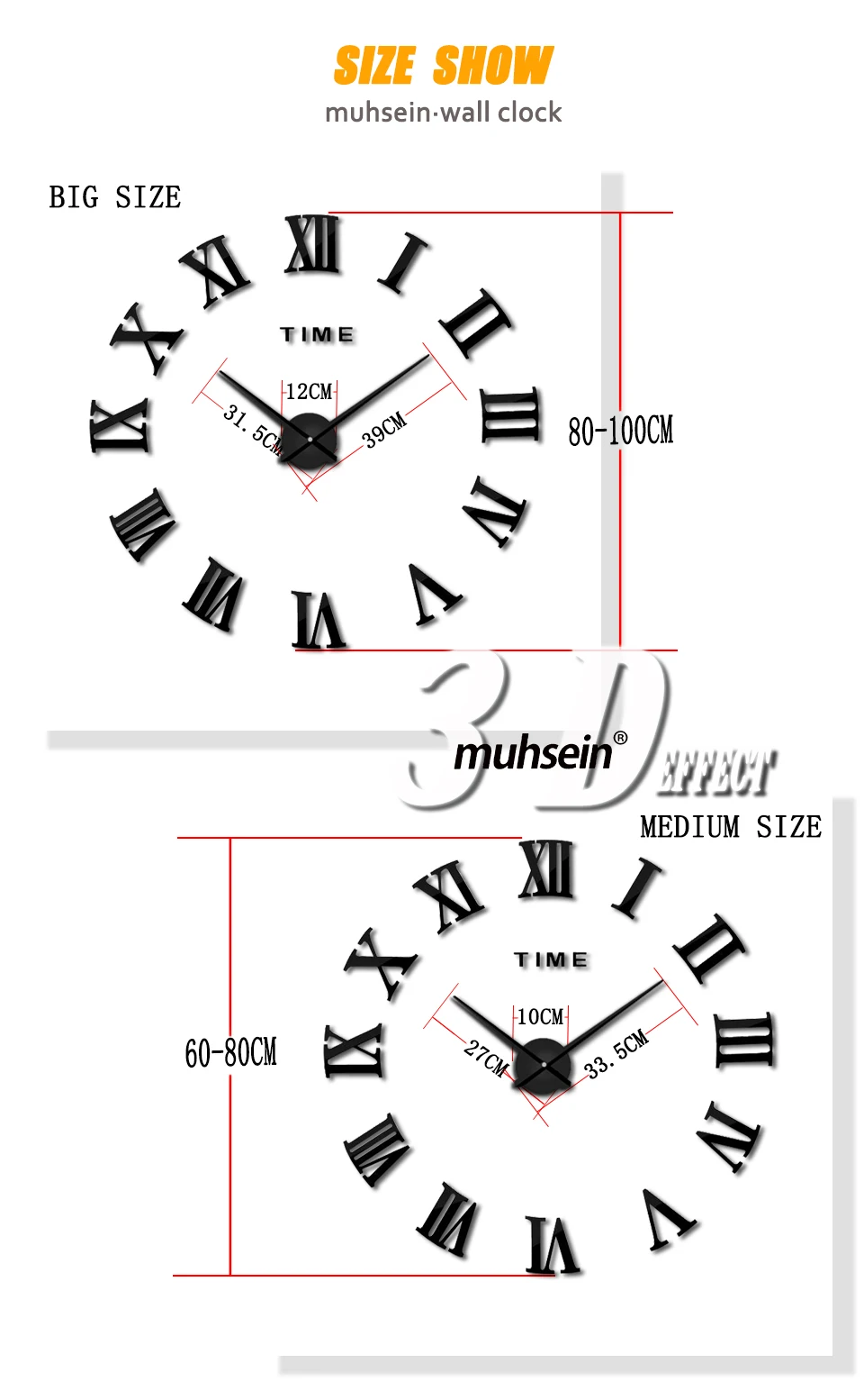 Hour hand:27cm /31cm