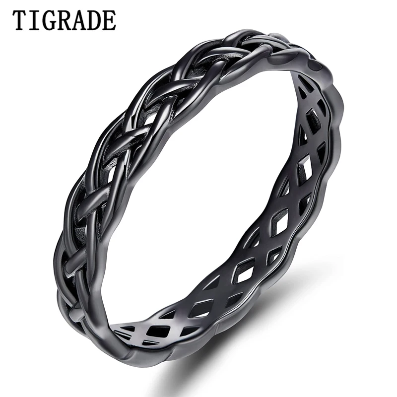 Женское Обручальное Кольцо TIGRADE, черное кольцо из стерлингового серебра 925 пробы с кельтским узлом, 4 мм, обручальные кольца с воротником