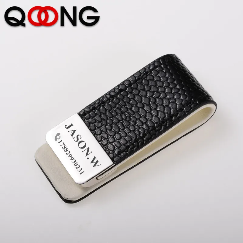 Кожаный кошелек с надписью на заказ для мужчин и женщин, тонкий металлический держатель для денег, безопасный кошелек, зажим для купюр, зажим для денег, кредитных карт