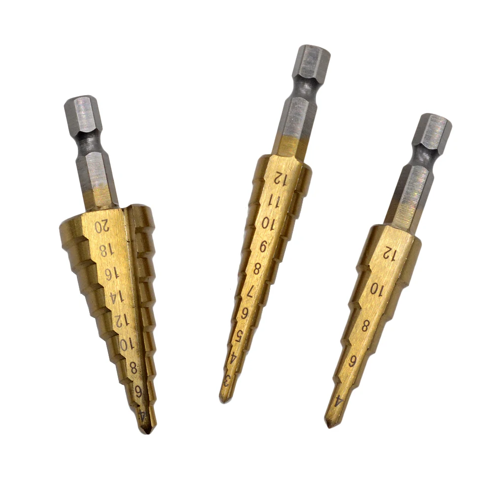 3 шт.лот титановые ступенчатые сверла 3-12 мм 4-12 мм 4-20 мм