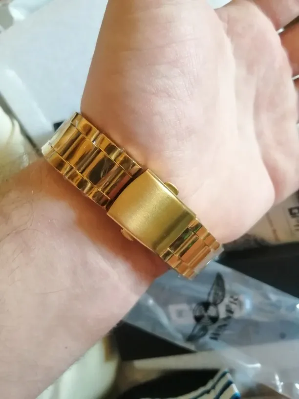Часы супер. СПАСИБО. Всё в лучшем виде очень доволен. И шли не не очень долго по моим меркам. Спасибо постарались к новому году. Сам себе не сделаеш подарок кто сделает. дети ещё маленькие. жена давно 5 лет назад бросила их. вот они теперь с подарками от меня радуются что папа себе кои то годы чтото тоже подарил. упакованы професионально всё чётко. ну выглядят конечно богато как говорится и что не маловажно чюствуются на руке вес имеют. в общем часы класные. СПАСИБО.