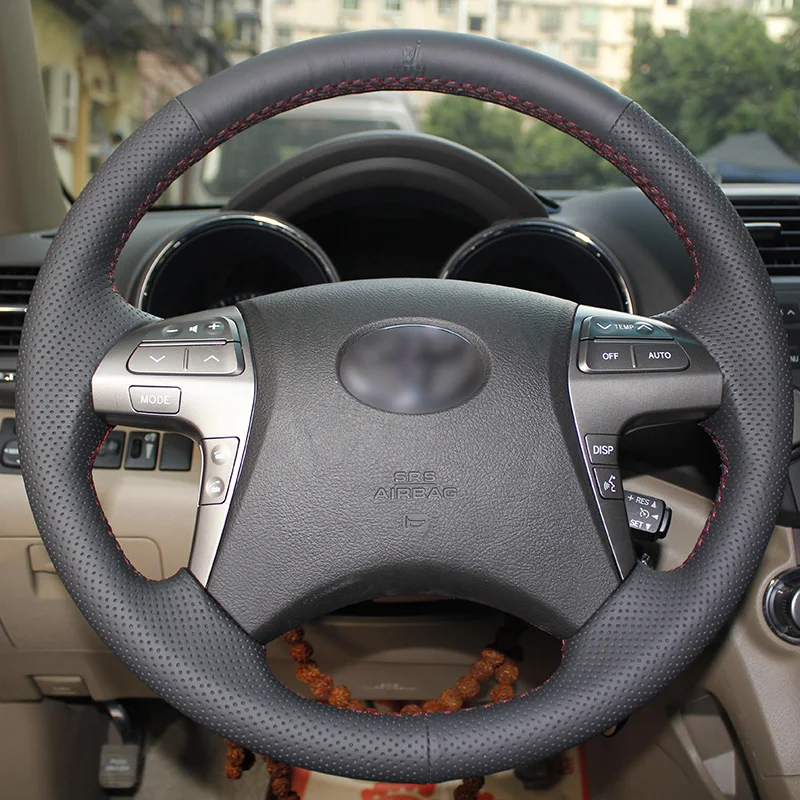 Чехол на руль из черной кожи, прошитый вручную, блестящий, для Toyota Highlander, Toyota Camry 2007-2011