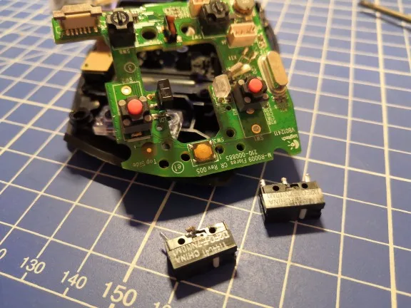 заменил 3pin кнопки omron. выпаивал и плакал. новые кнопки очень тихие. если мышка сама не гремит, то щелчки по громкости как пердёж таракана.
