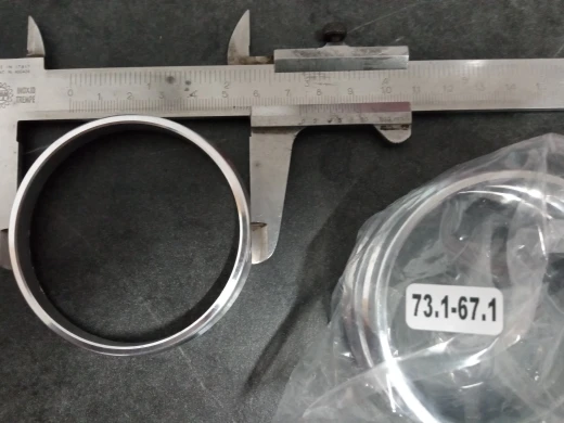Пришло быстро. Колёса ещё не ставил на авто, но кольца вставил в диски. Входят очень плотно, руками не вставить, вбивал киянкой.