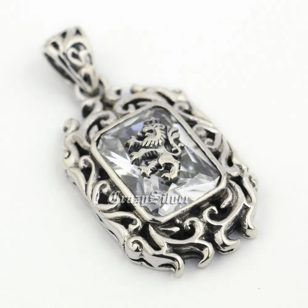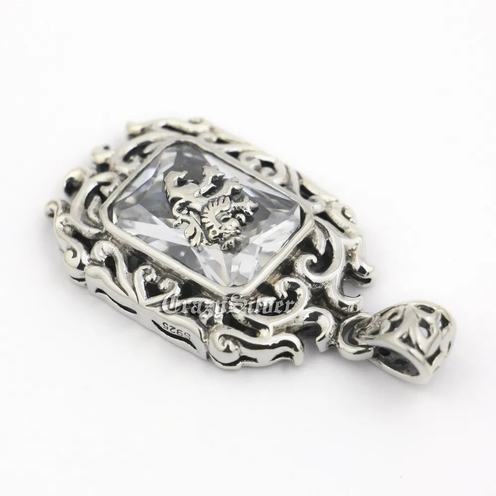 Мужская подвеска в стиле панк LINSION, Байкерская подвеска в виде Серебряного льва на белом кубическом камне, 9R019