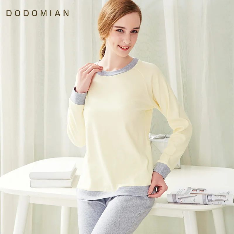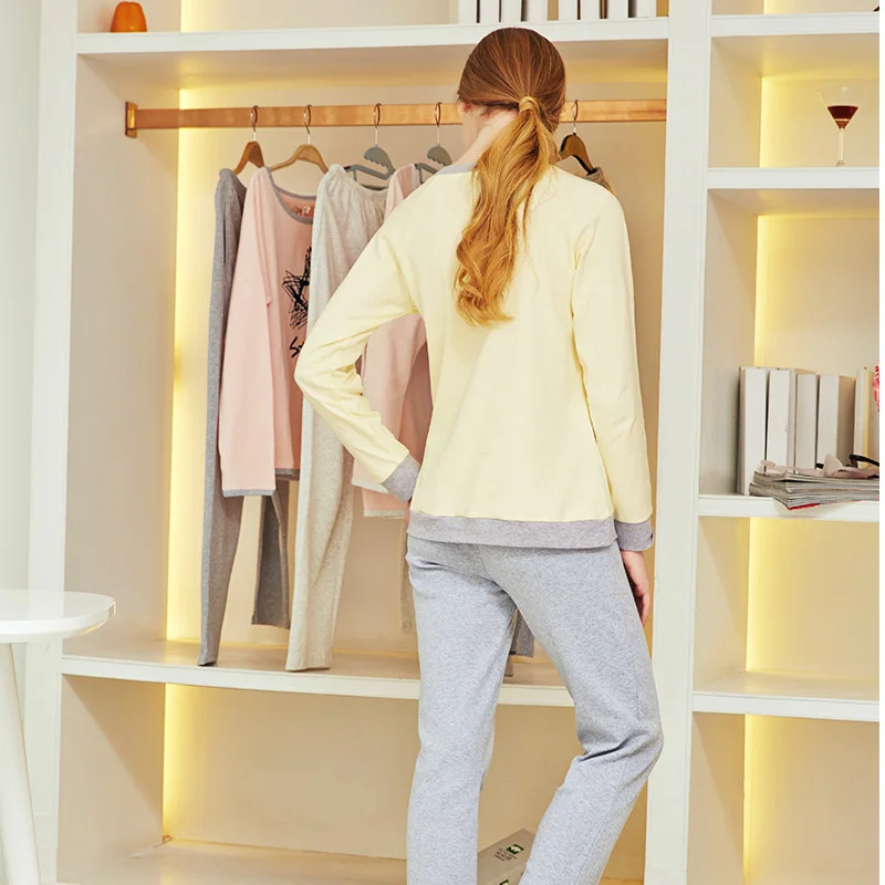 2019 Ввесенне-летний Женский Пижамный Комплект Свободные Пижамы Костюмы Светло-желтые Хлопок Сексуальные Ночные Рубашки + Брюки