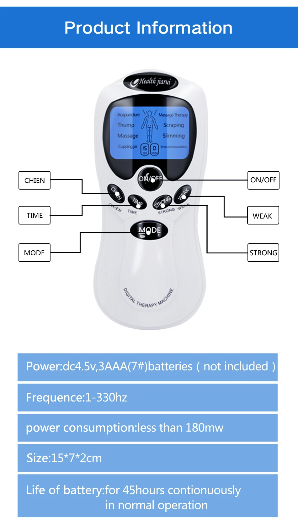 8 Режим EMS Электрический herald филировальная Машина Корпус иглоукалывания массаж Цифровая терапия массажер стимулятор мышц электростимулятор