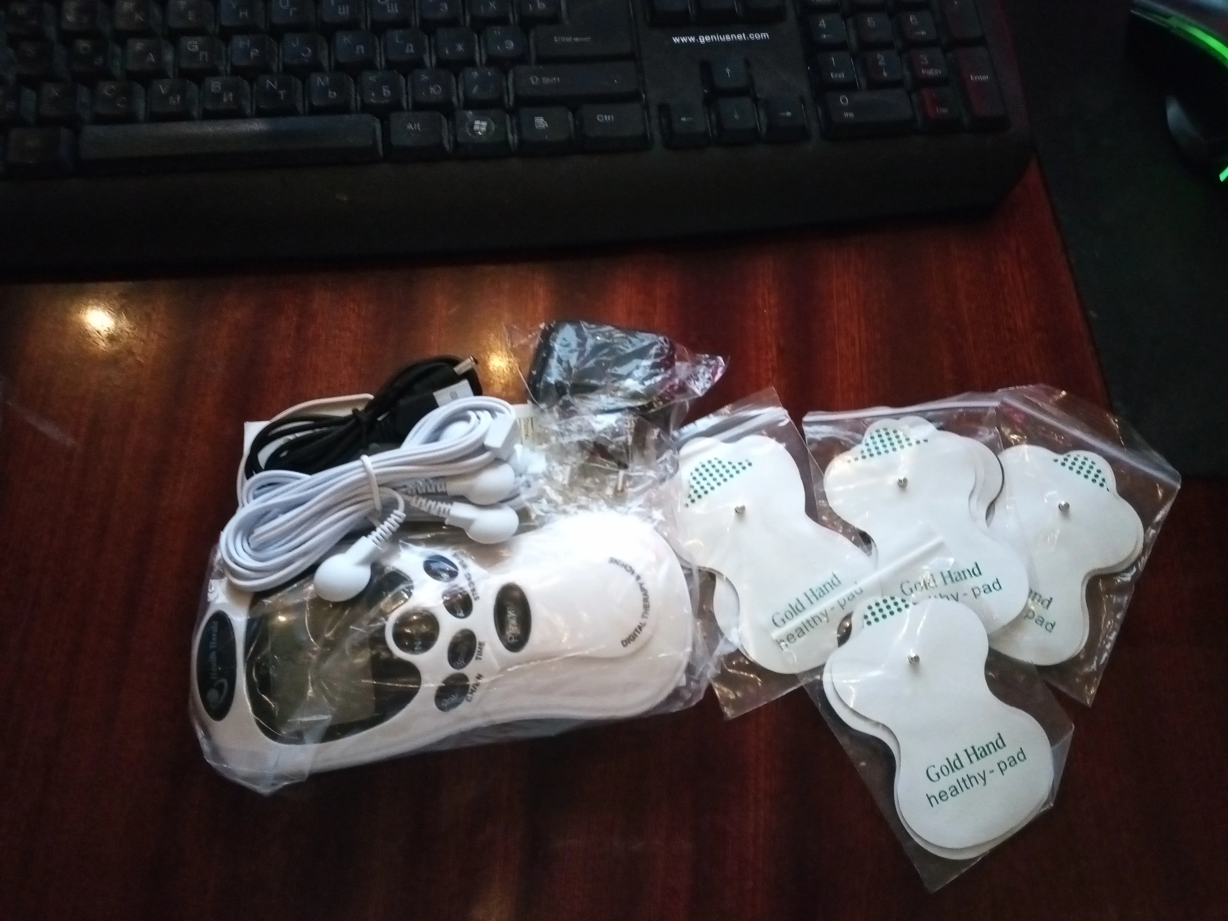 Пришло все окей.Реалистичные ощущения массажа,логотип фирмы на корпусе,два электрода,офигительная вещь по сравнению чем прибор Тлина за полтора косаря где одни недостатки.экономия целый рубль.