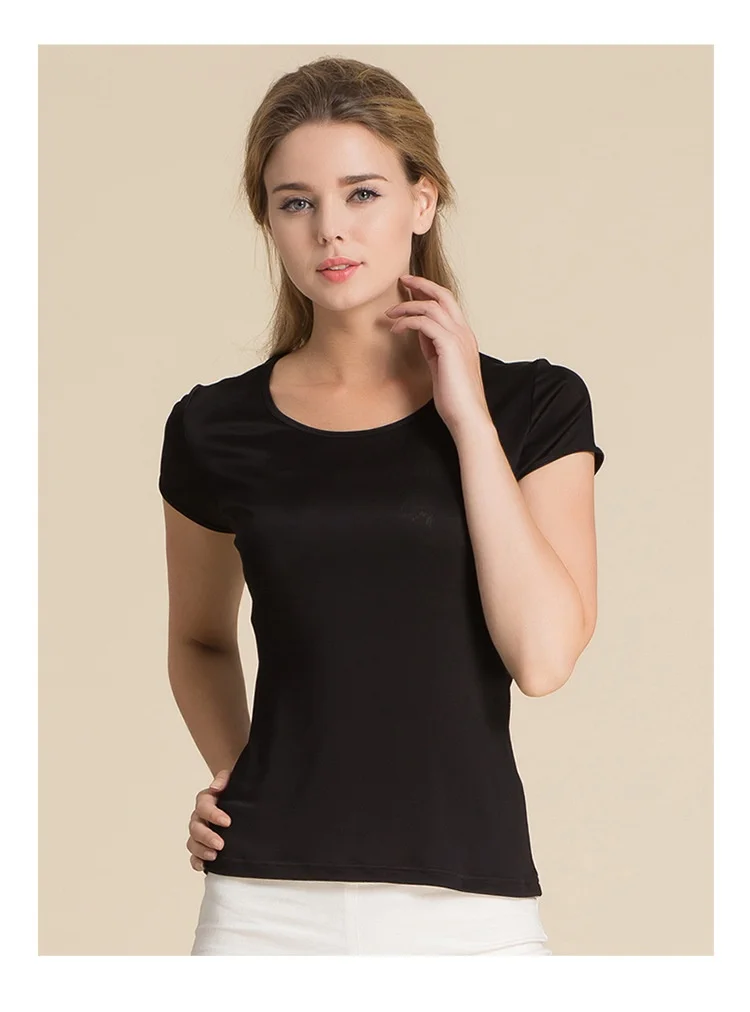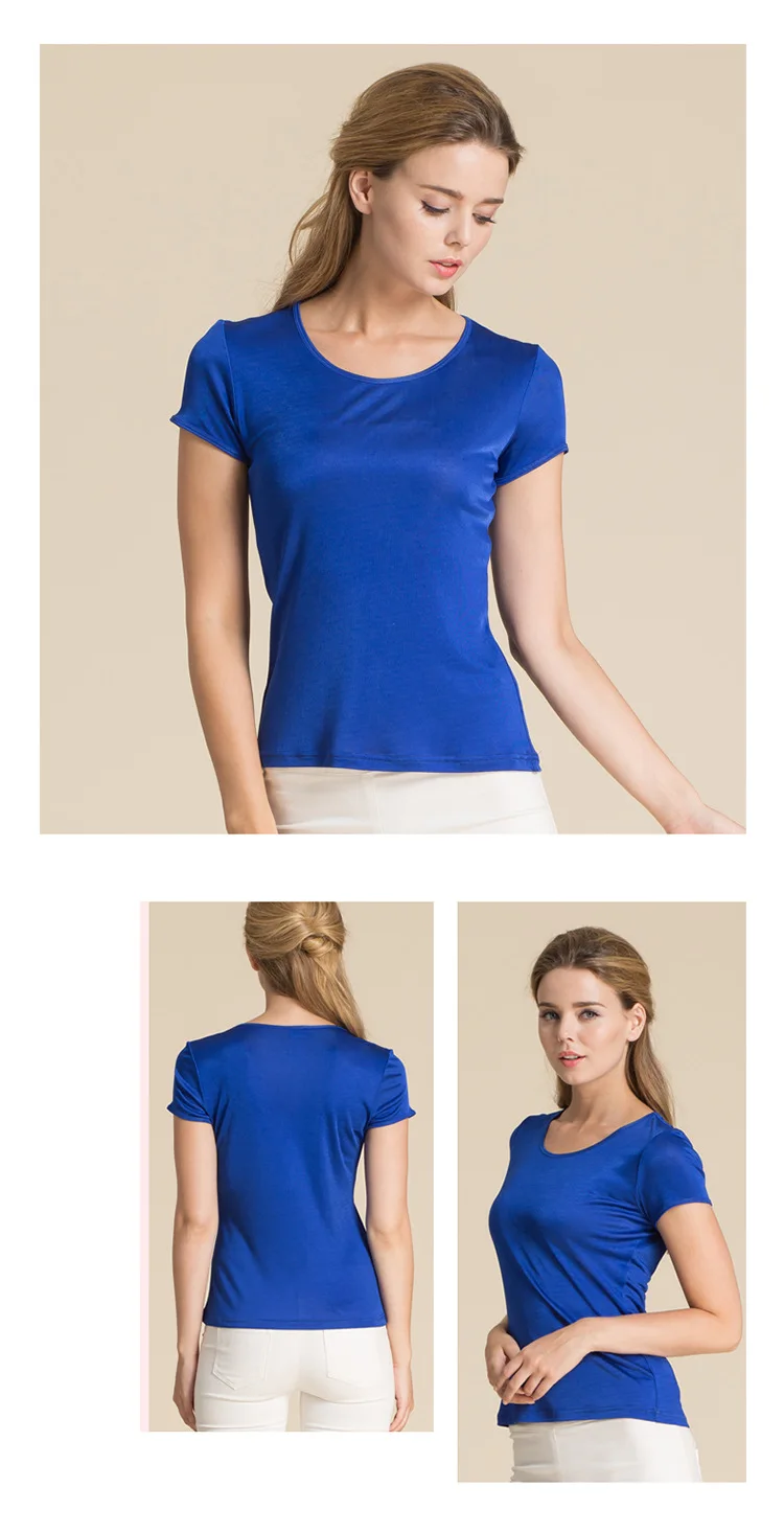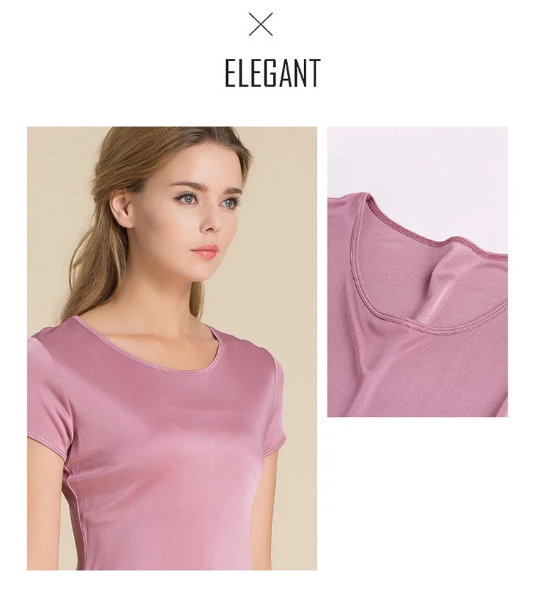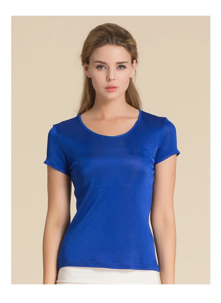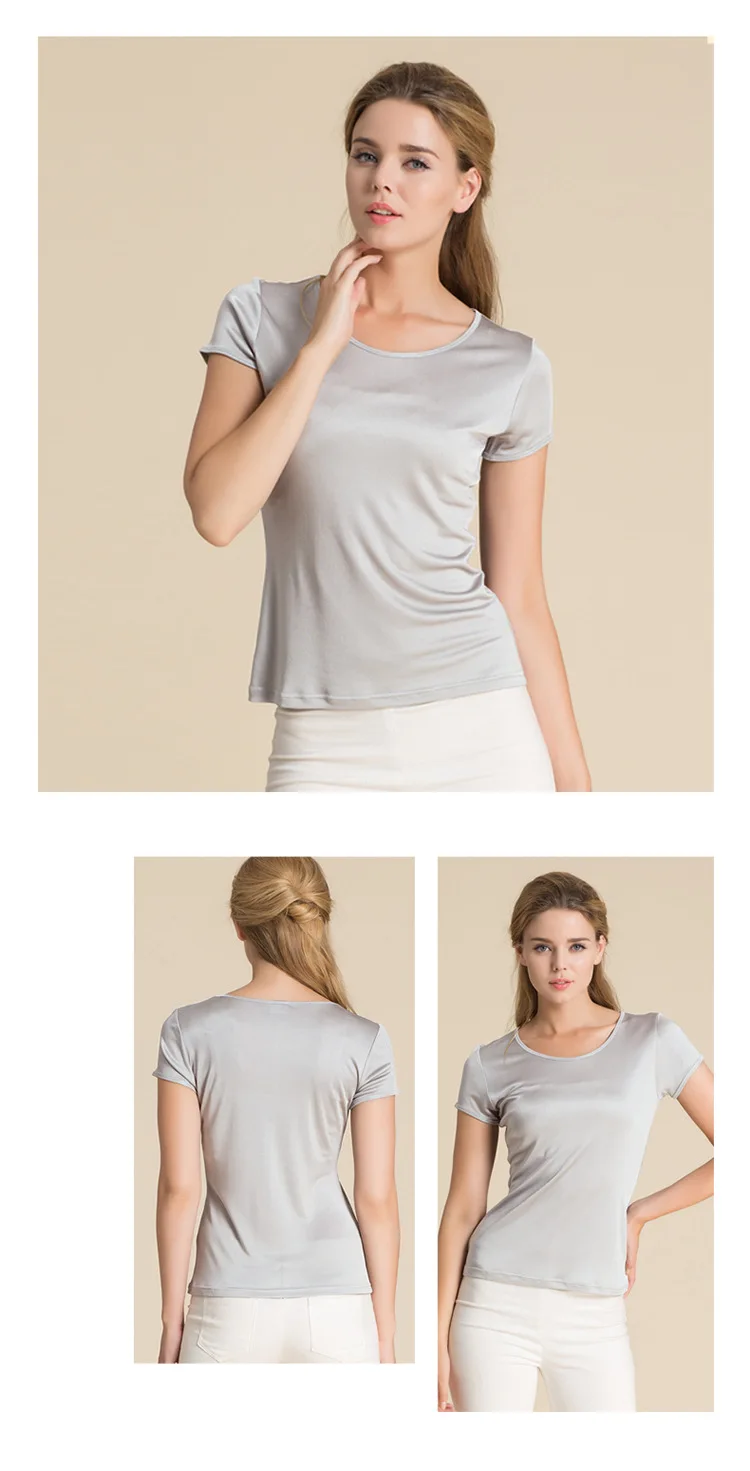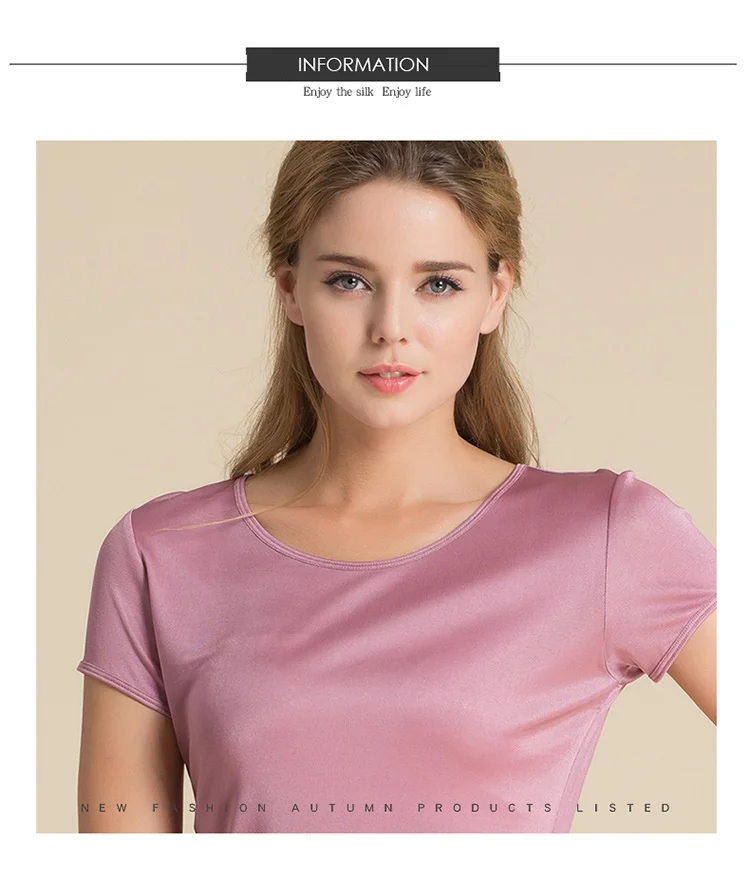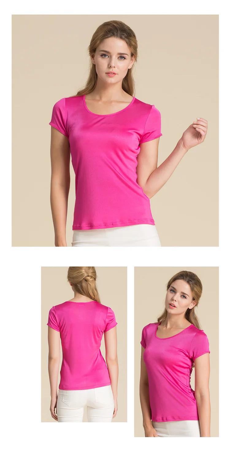 Футболка женская из чистого шелка, повседневный Топ, однотонная Модная рубашка с коротким рукавом, карамельные цвета, 100%