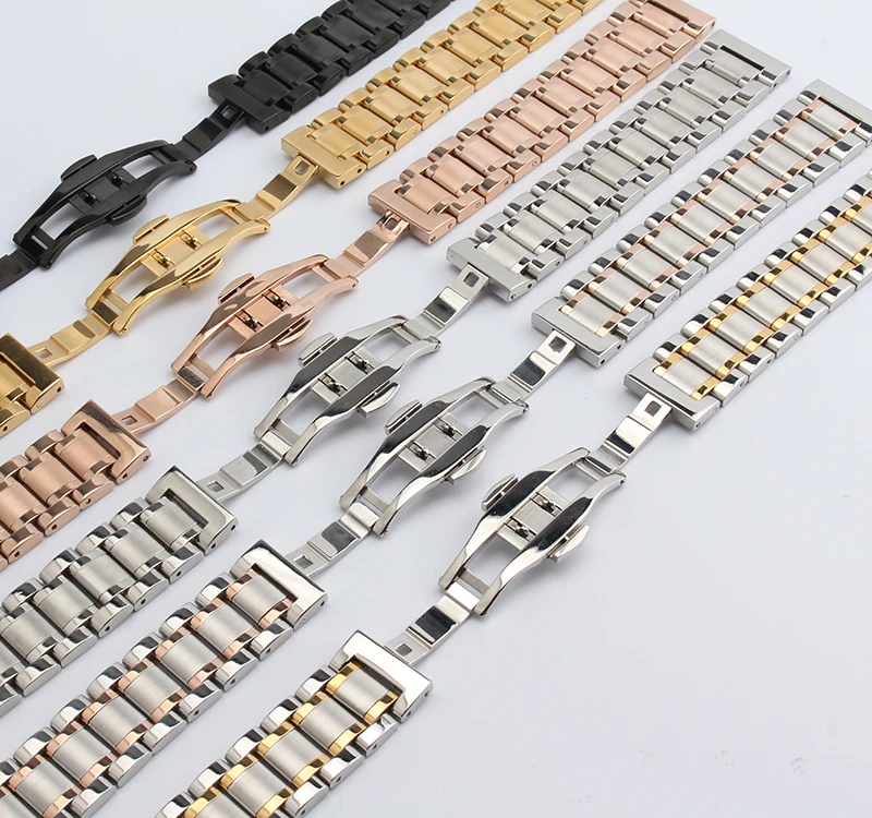 Ремешок из нержавеющей стали для наручных часов, браслет для мужчин и женщин, 14 мм 15 мм 16 мм 17 мм 18 мм 19 20 21 22 23 мм, цвет серебристыйзолотой