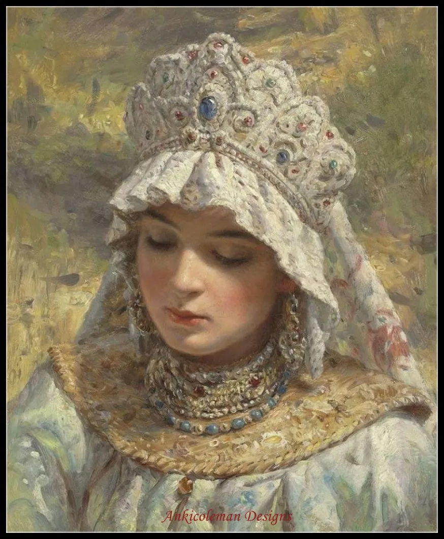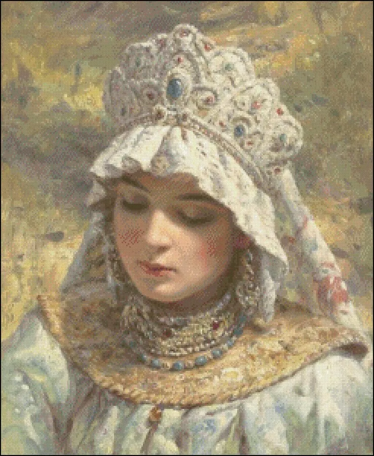 Это новый и нераскрытый полный набор для счетного крестика под названием"Русская красавица В Кокошнике."