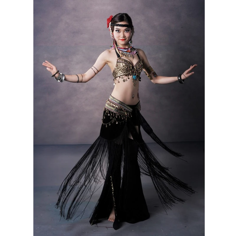 Костюм для танца живота в племенном стиле, бюстгальтер и юбка, Женский Топ, набедренный шарф 34b/c 36b/c 38b/c, чашка, одежда для танца живота, 4 цвета