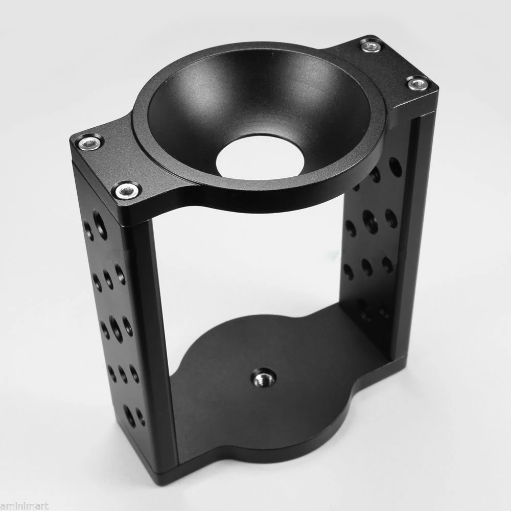 Он имеет три резьбовых отверстия 3/8 дюйма и десять 1/4 дюйма с каждой стороны. Позволяет устанавливать на него такие аксессуары, как Шарнирный рычаг, вспышка, Светодиодная панель. Вы также можете использовать его как монтажную пластину для сыра.