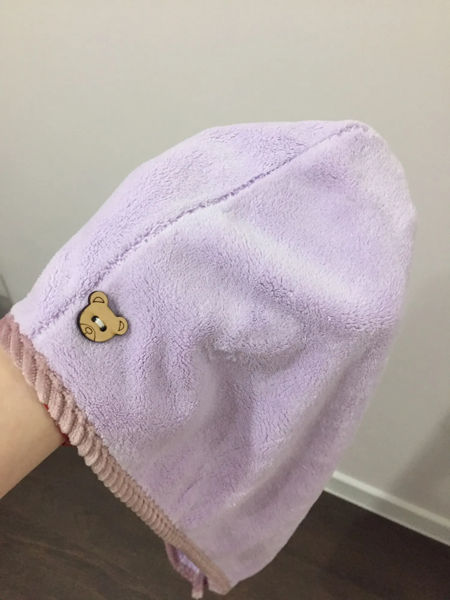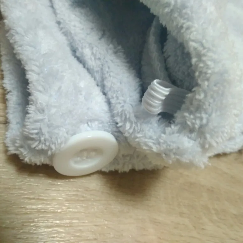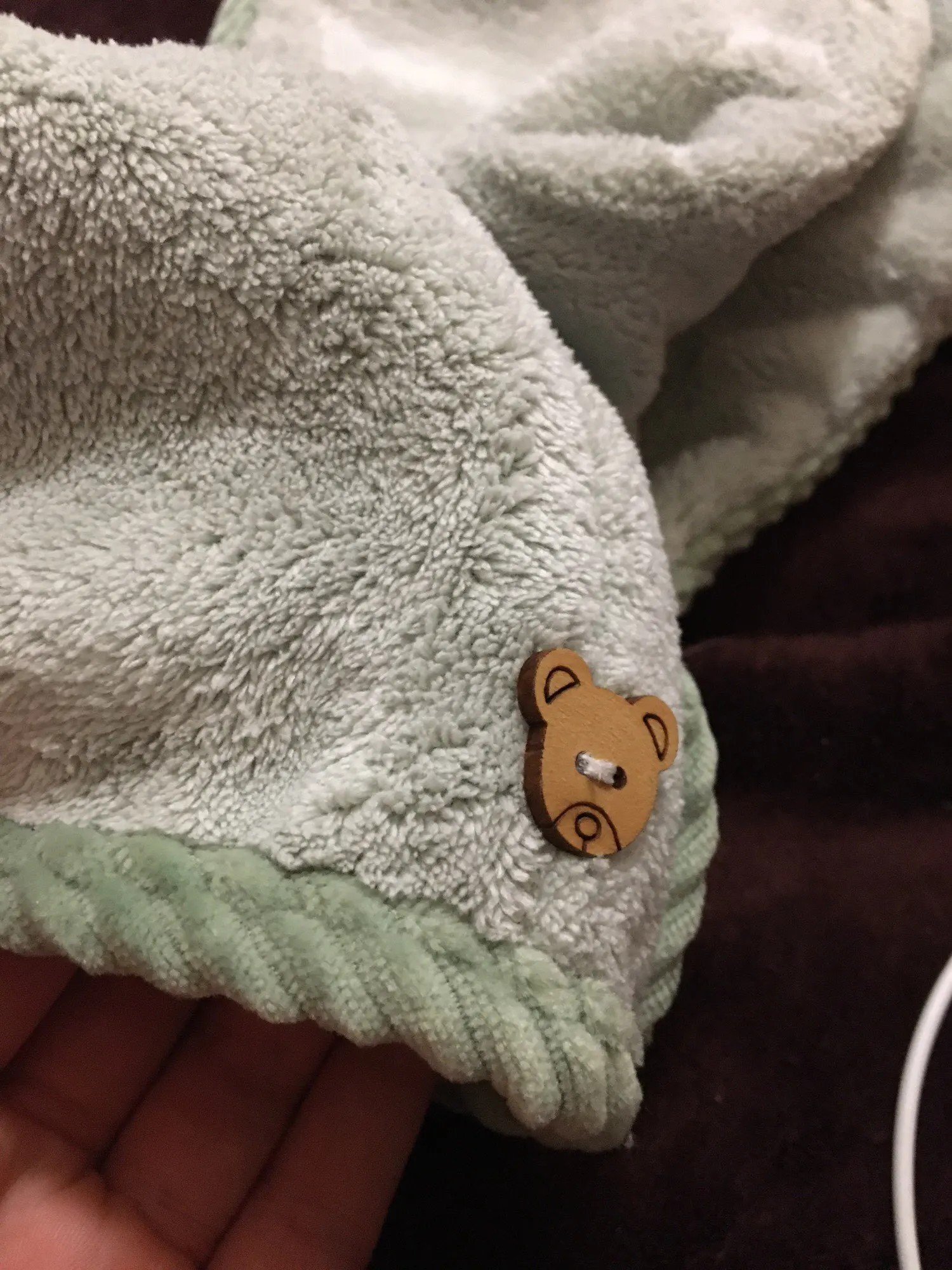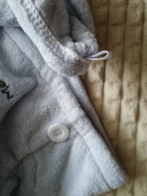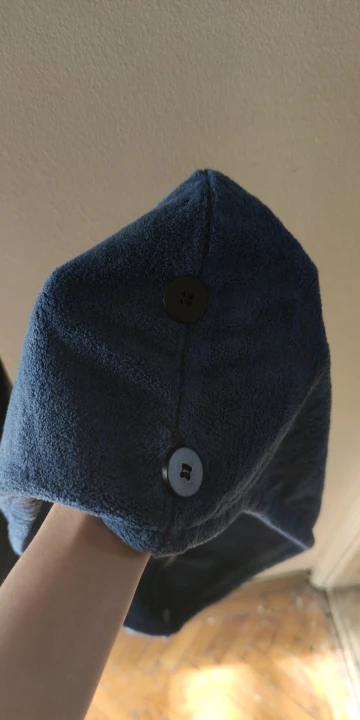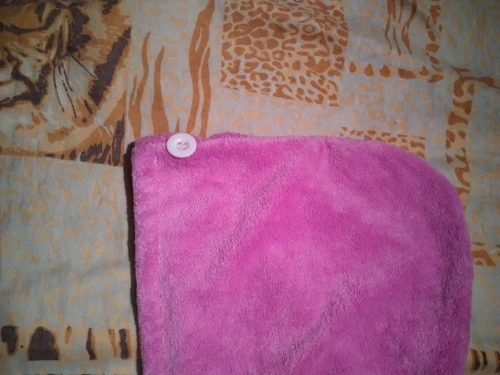 Я и моя дочь в восторге от полотенец. Во-первых, они идеальные для исполнения кудрявого метода (кудряшки не деформируются), во-вторых, они быстро сохнут, в -третьих, одного полотенца достаточно для того, чтобы просушить волосы после мытья, а не как раньше - 3-4 полотенца и все мало. Дочь оценила смешную пуговицу в виде медвежонка.