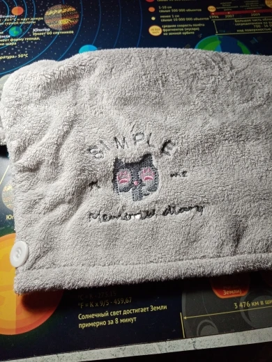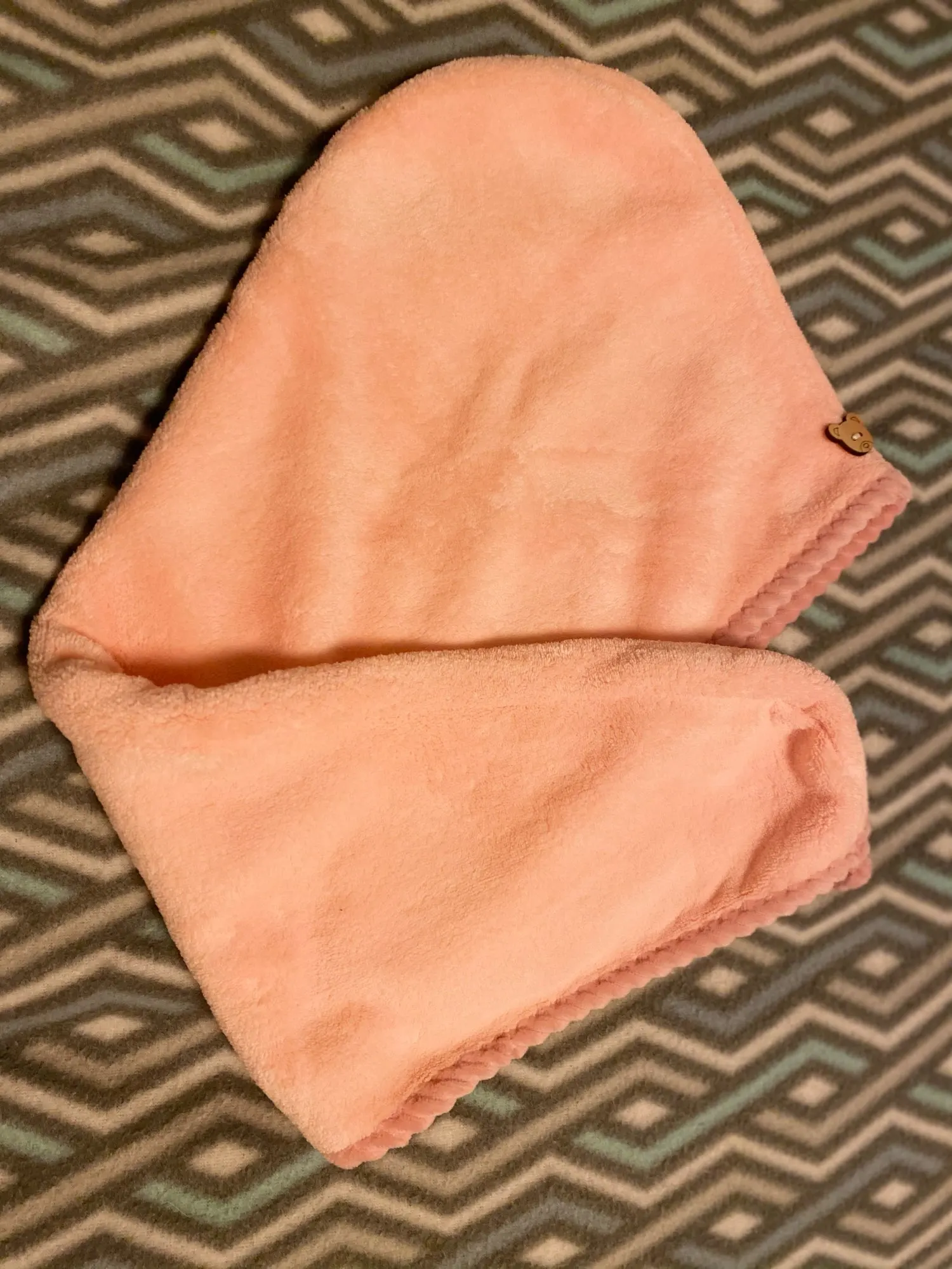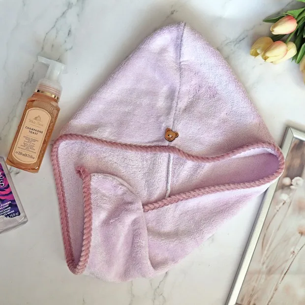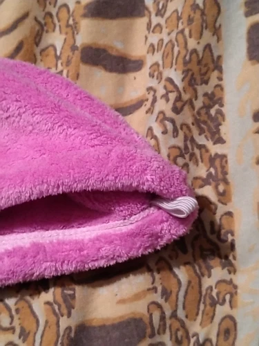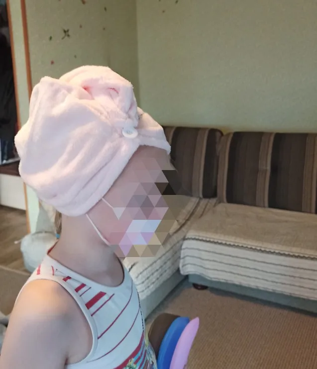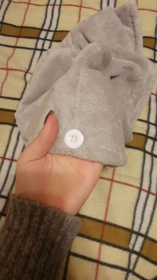 Я и моя дочь в восторге от полотенец. Во-первых, они идеальные для исполнения кудрявого метода (кудряшки не деформируются), во-вторых, они быстро сохнут, в -третьих, одного полотенца достаточно для того, чтобы просушить волосы после мытья, а не как раньше - 3-4 полотенца и все мало. Дочь оценила смешную пуговицу в виде медвежонка.