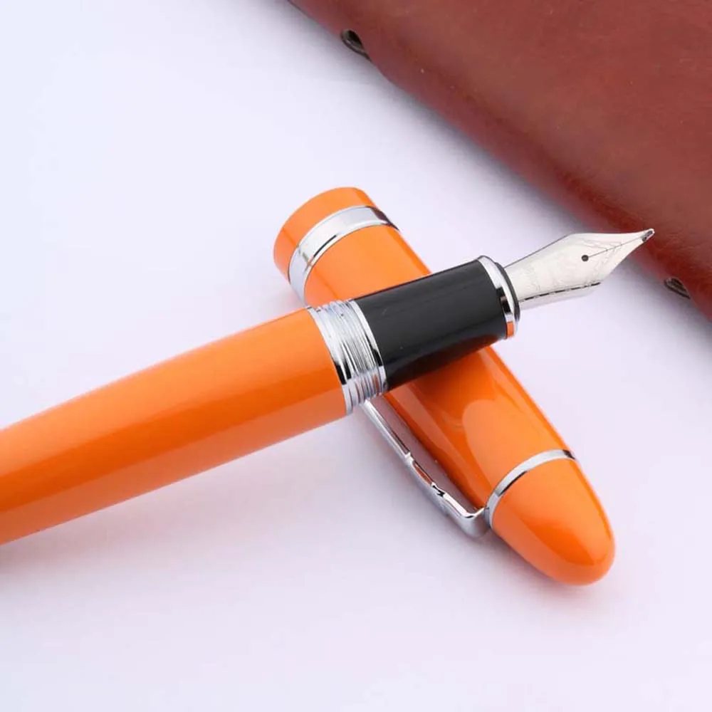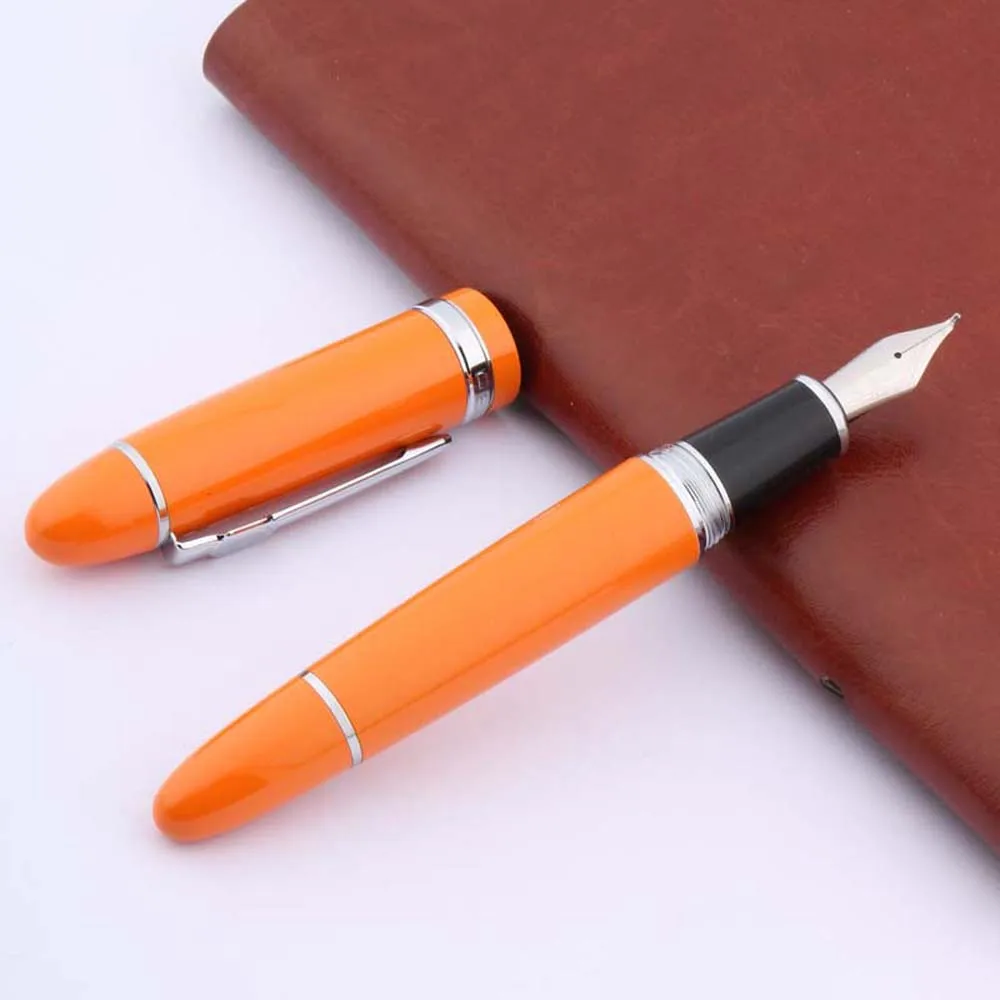 Роскошная металлическая перьевая ручка Jinhao 159, оранжевая, серебристая, вращающаяся, подпись, каллиграфия, ручка, канцелярские принадлежности для офиса, школьные принадлежности