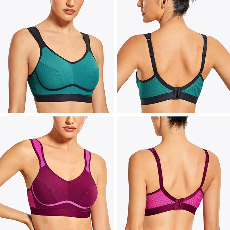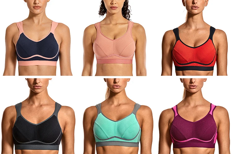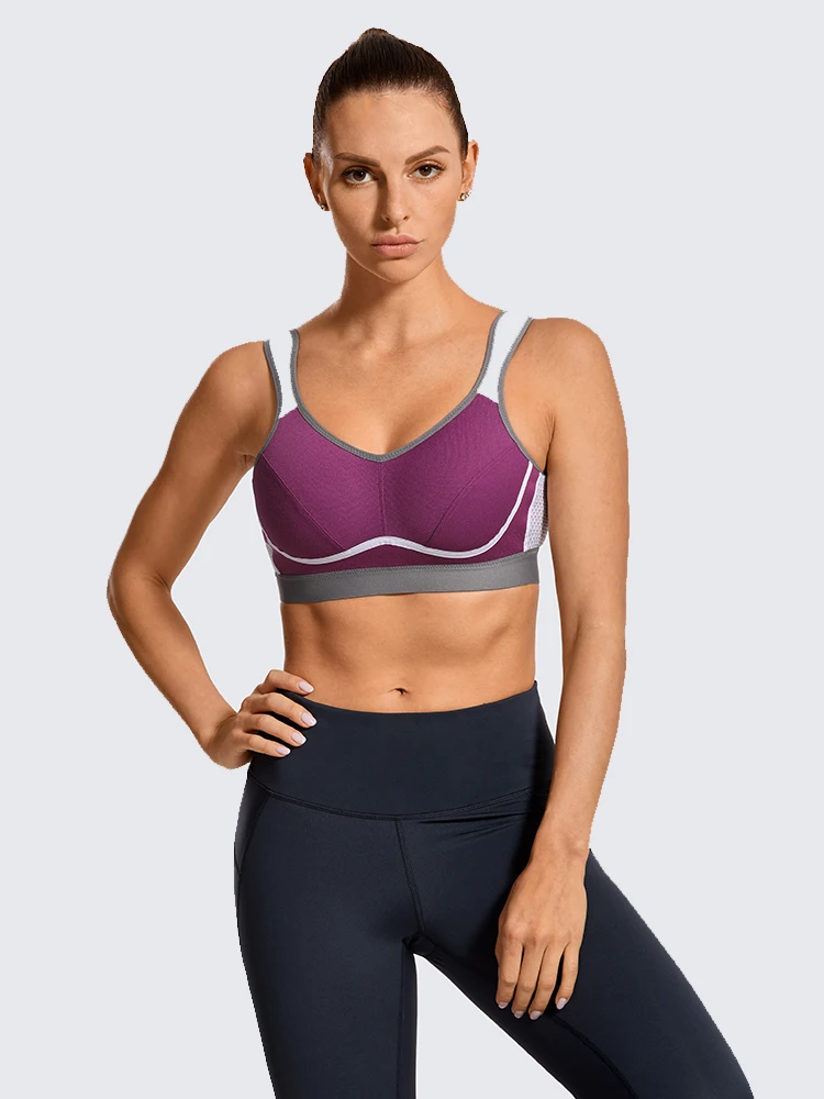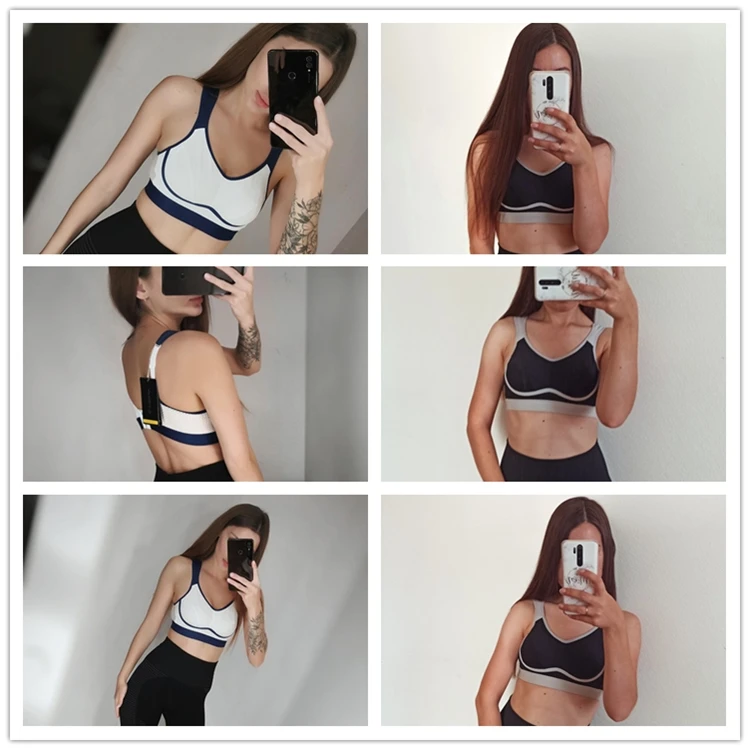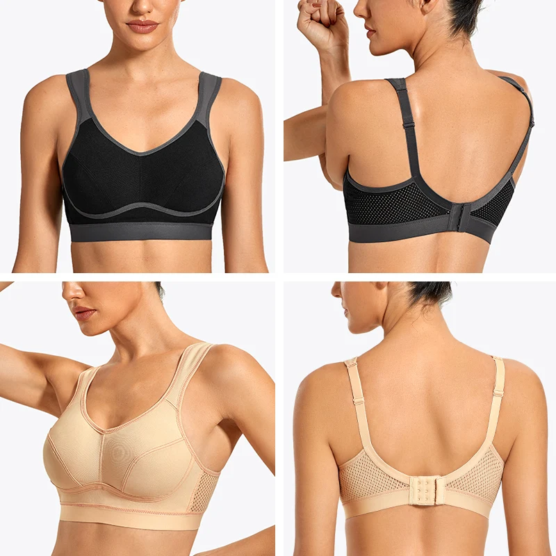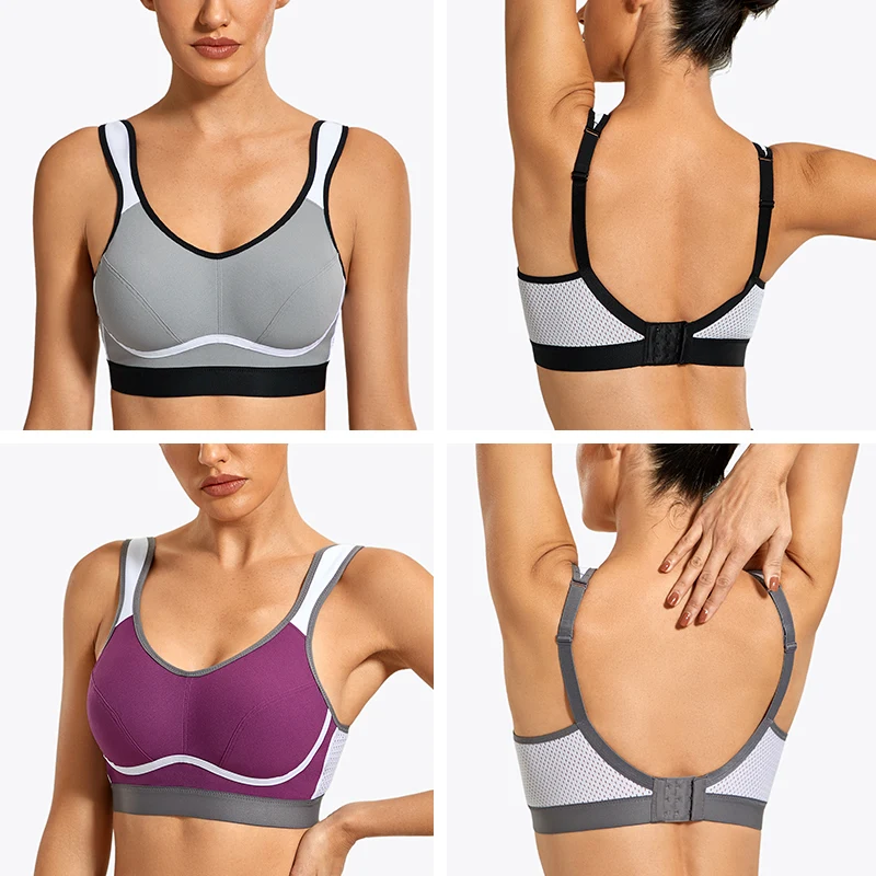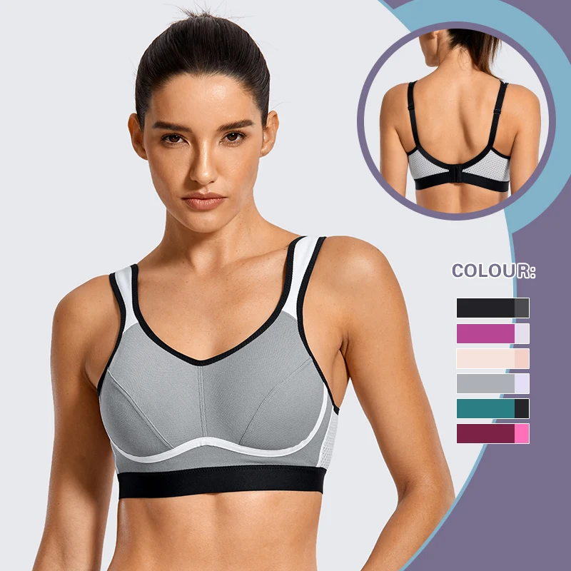 Женский спортивный бюстгальтер с высокой ударной поддержкой, размера плюс для тренировок (Примечание: черный цвет с серой отделкой)