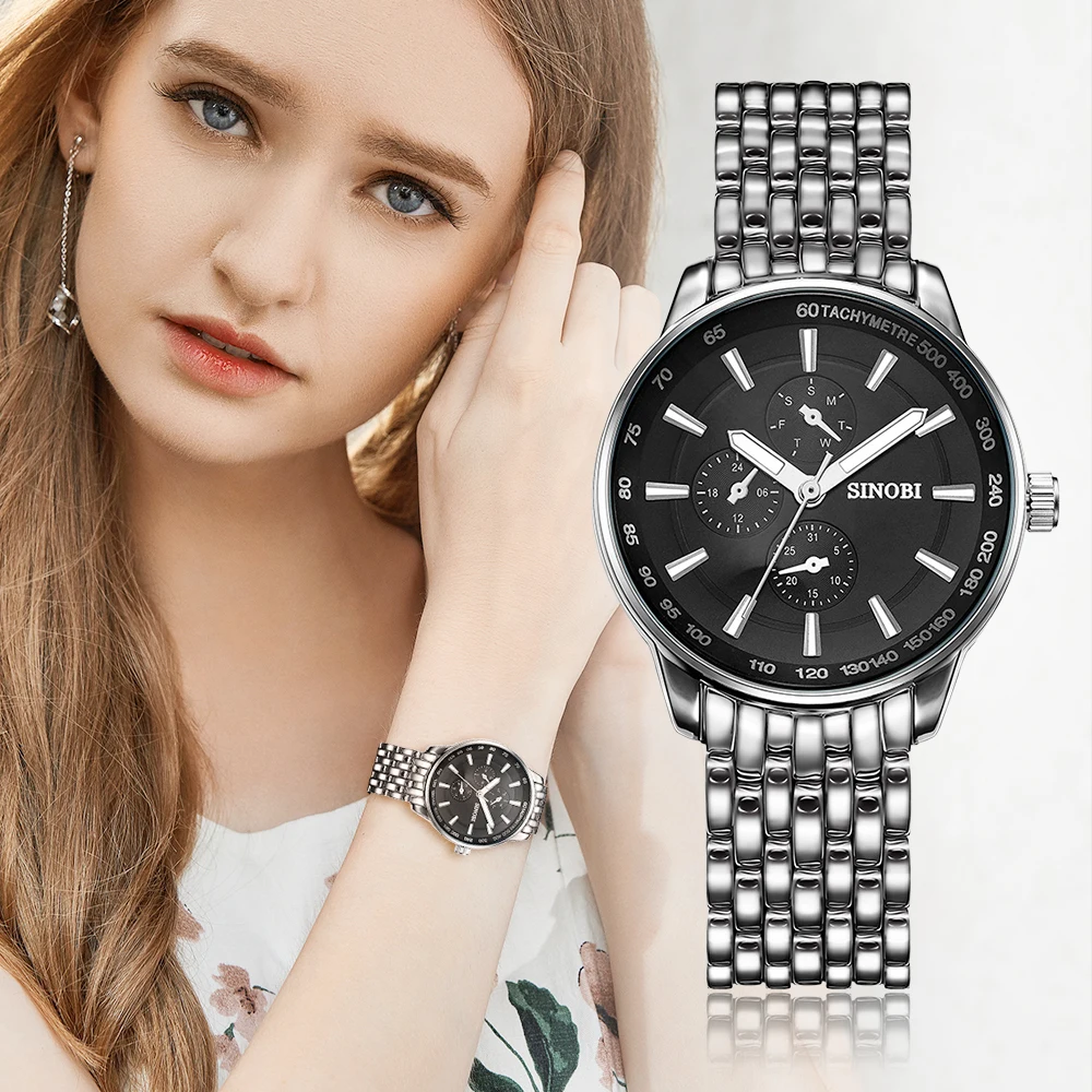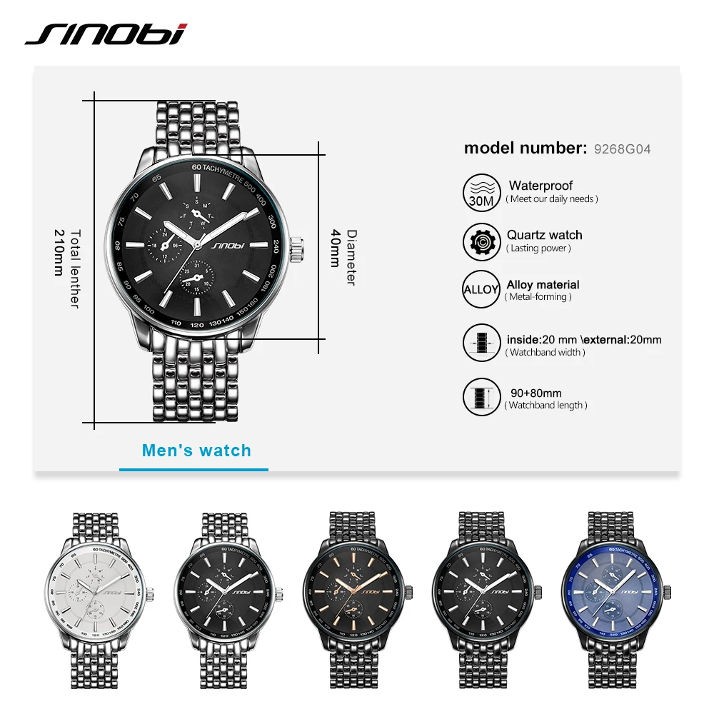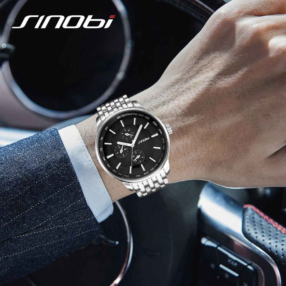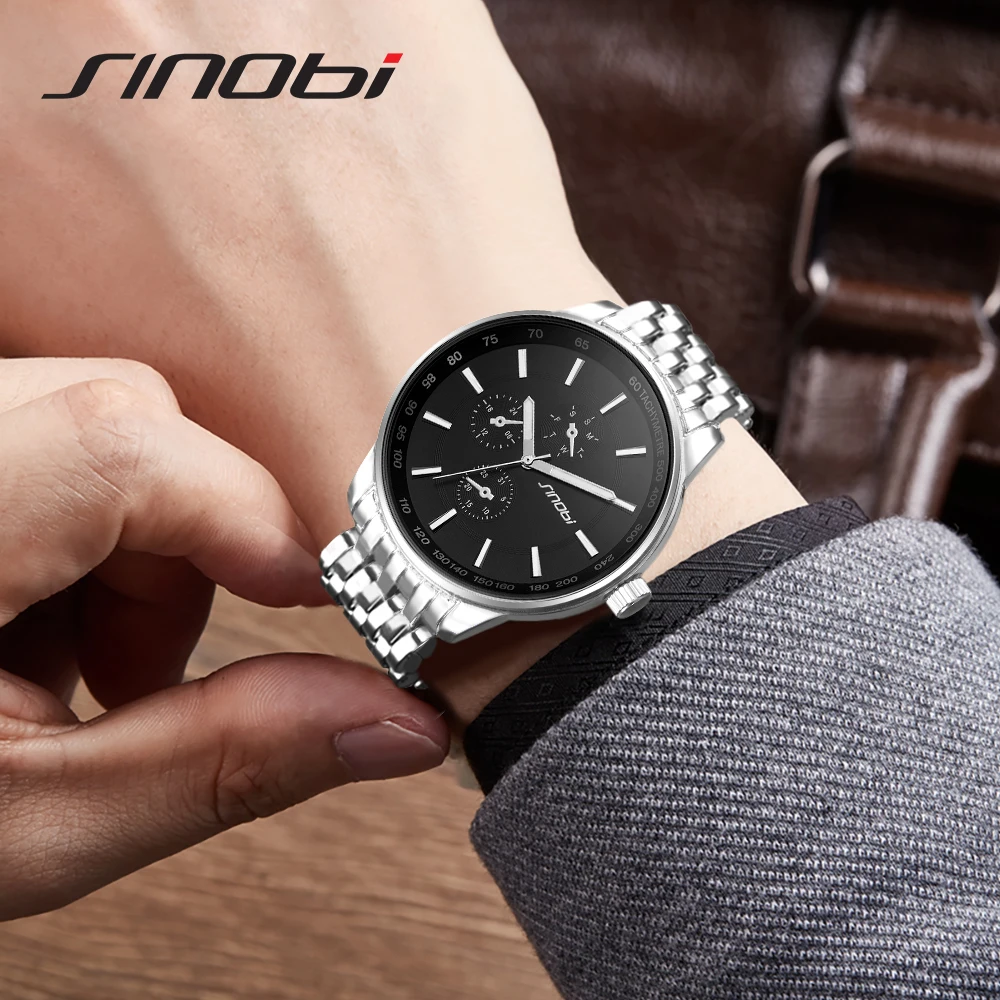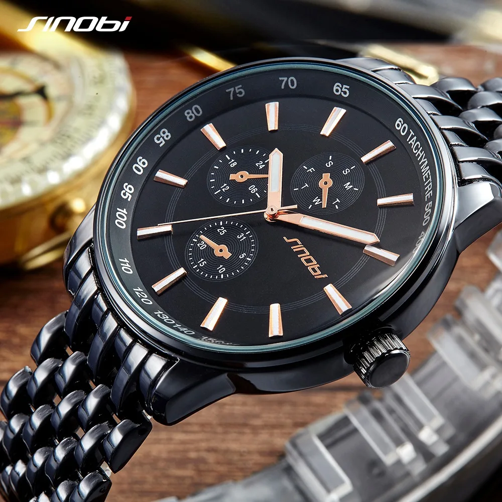 Часы наручные SINOBI Мужские Классические, брендовые Роскошные модные спортивные Geneva, из нержавеющей стали, черные