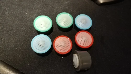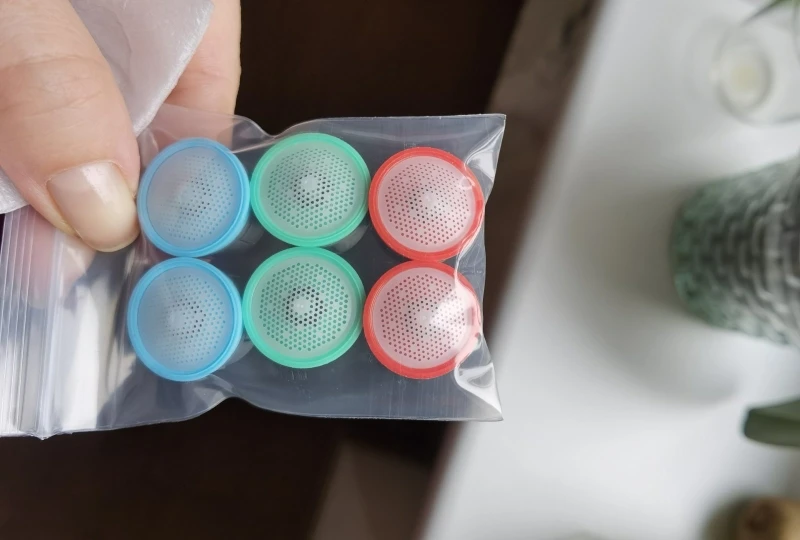 Пришёл заказ довольно быстро. Написал продавцу и попросил положить по 2 шт с разным расходом, 4, 6 и 8 литров, что продавец и сделал. Качество отличное. Поставил на 4 литра и в умывальник и на кухню. Показалось что для кухни самое то, ну а в умывальник можно немного и поменьше. Расходомеры маркированы только по цветам. Вроде как красный это на 4 литра. Но при замере у меня вышло литров 5 в минуту. А вообще получается отличная воднопузырьковая смесь. На 6 и 8 расход не замерял.