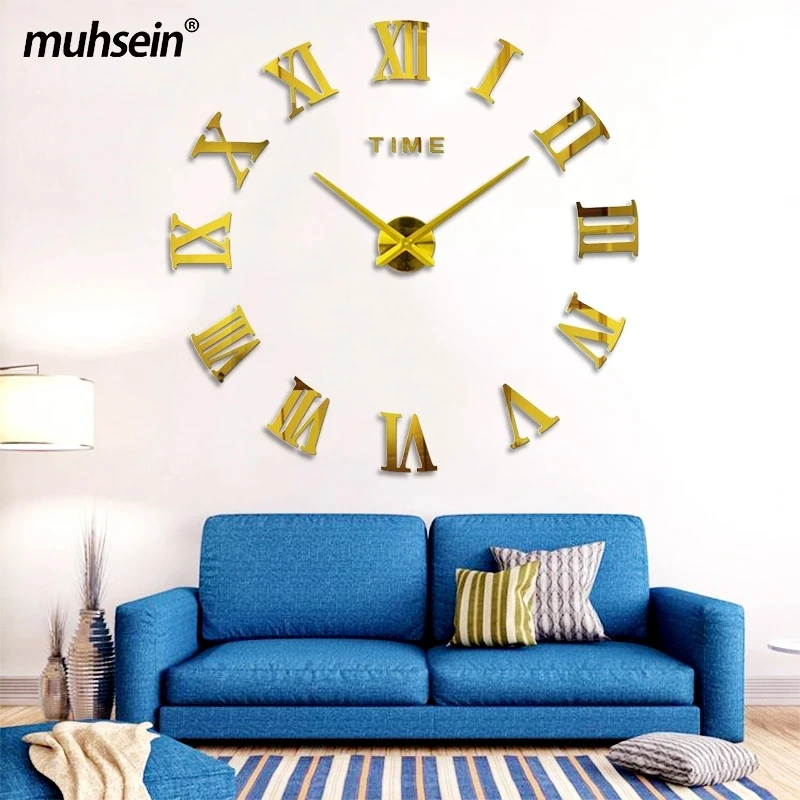 Новые 3D римские зеркальные настенные часы Musein 2021, домашний декор, большие размеры, настенные часы с наклейками, модные кварцевые часы, доступна оптовая продажа