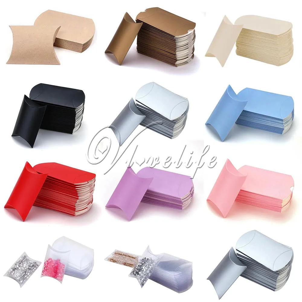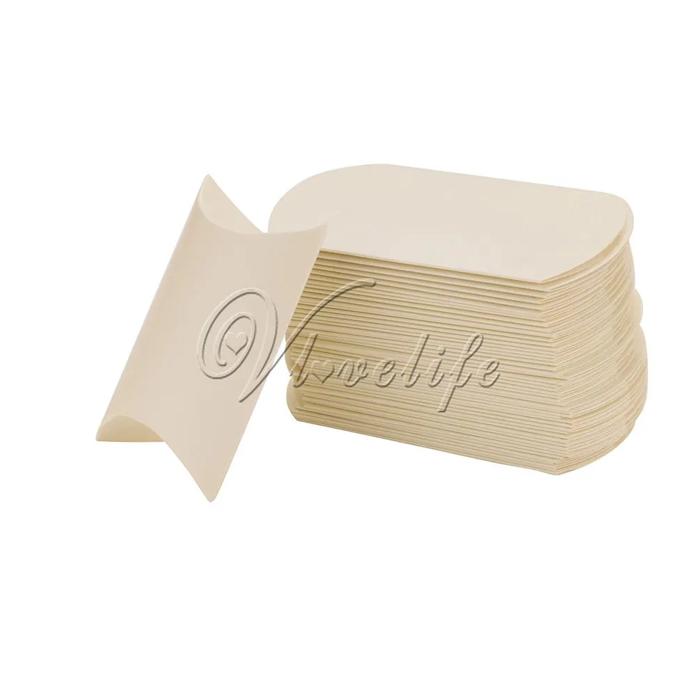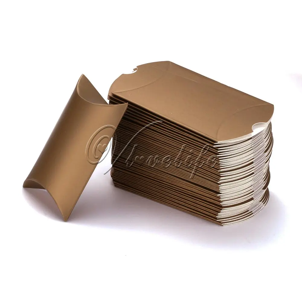 100 шт.лот, новый стиль, коробка в форме подушки, коробка конфет, Подарочная коробка для свадьбы, вечерние украшения, картонПВХкоричневый крафт, оптовая продажа