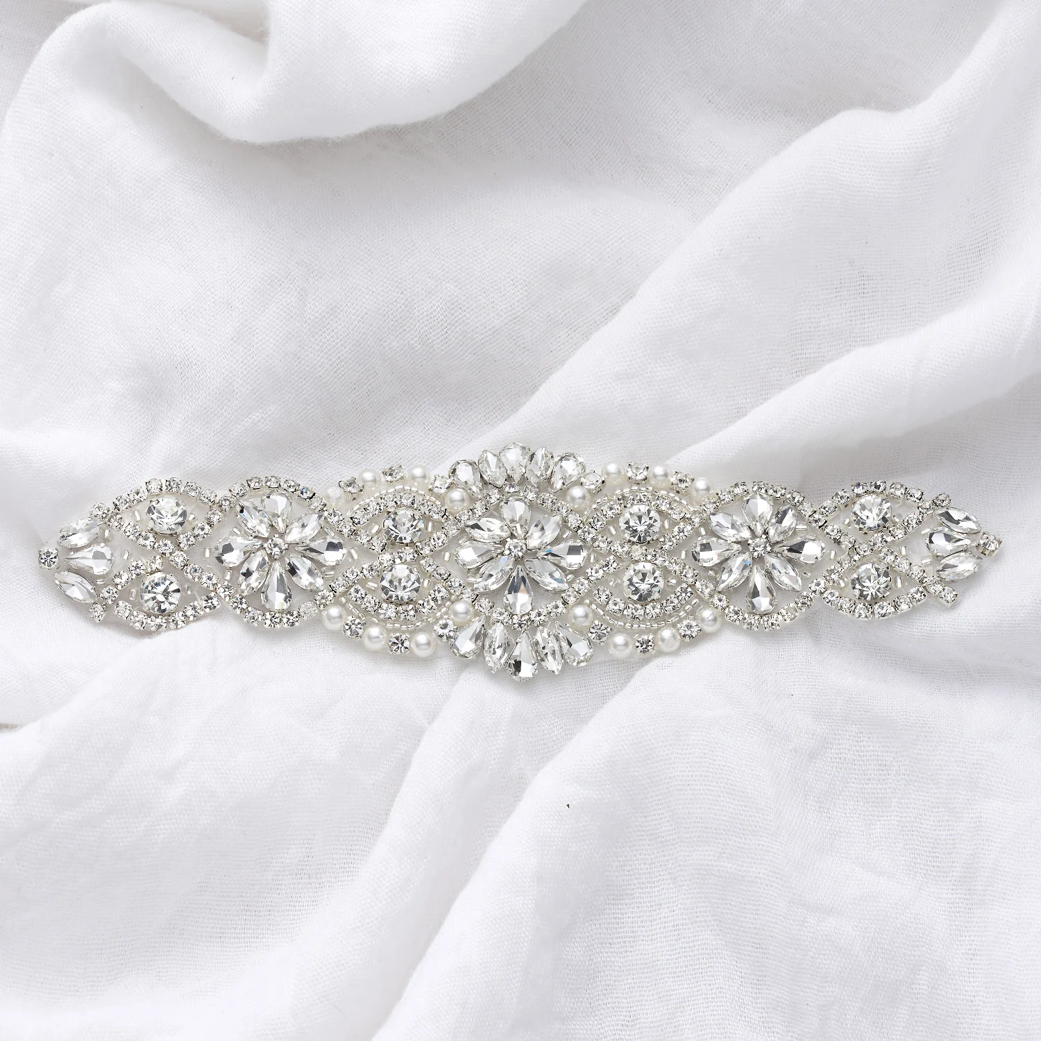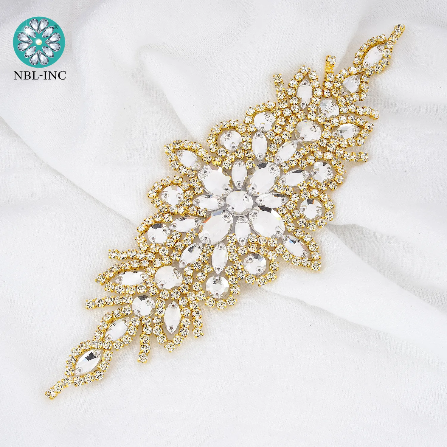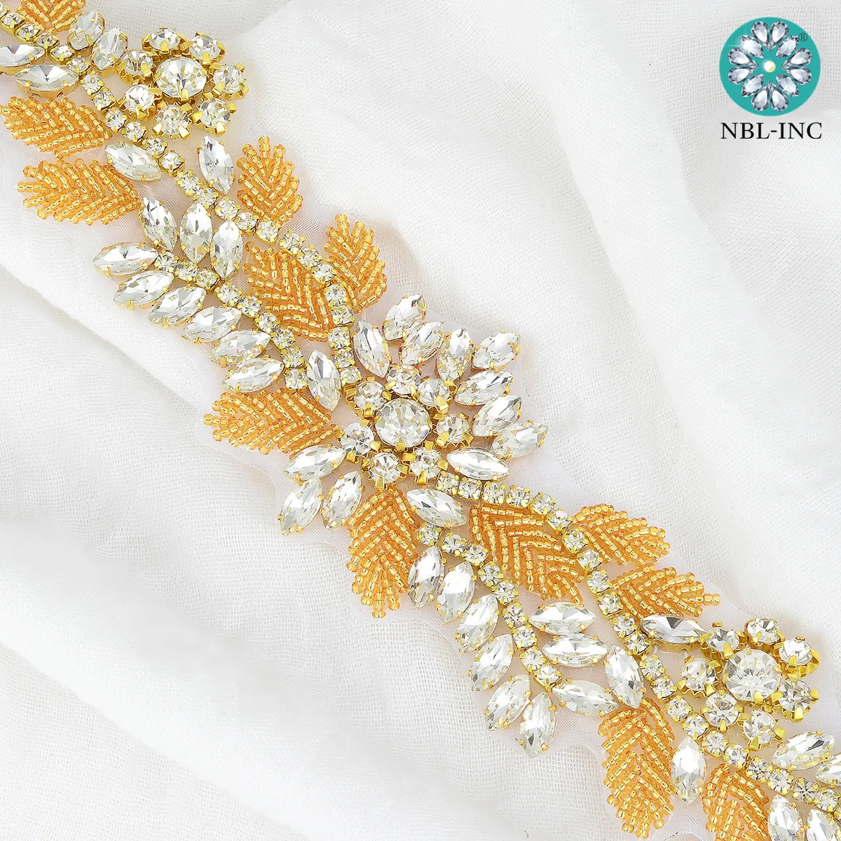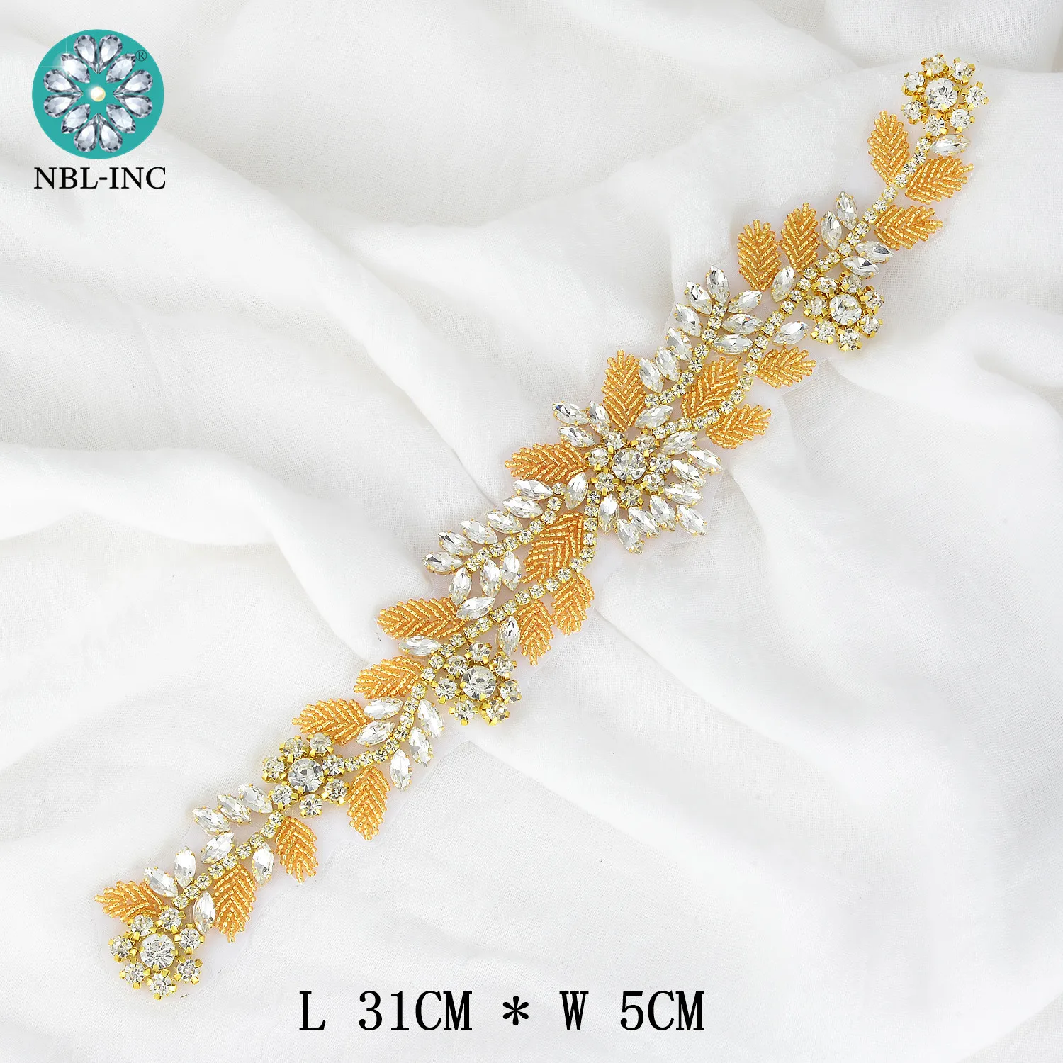 (1 шт.) Стразы Свадебная Серебряная Хрустальная аппликация золотые нашивки с бусинами пояс для пришивания утюгом Аппликация отделка для свадебных платьев