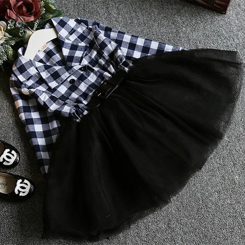 Осень 2021, клетчатое платье для девочек, Сетчатое бальное платье принцессы с прострочкой, платье для детей, платья с отложным воротником, одежда