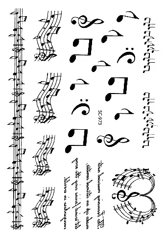 SC-973последние татуировки с музыкальным сигналом, дизайн татуировки, водонепроницаемые Поддельные Временные татуировки, черные тату