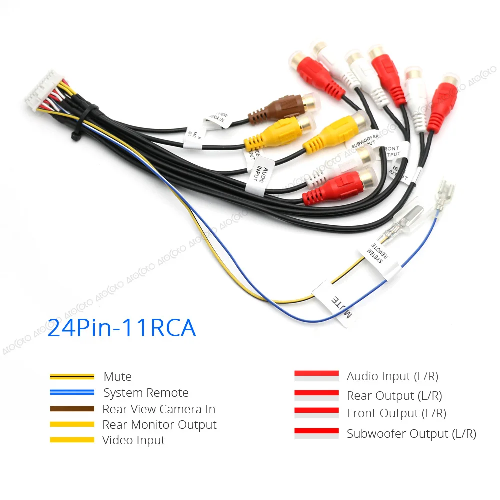 * Если вы устанавливаете послепродажное радио в своем автомобиле, вам понадобится Этот жгут RCA* Все жгуты и провода имеют собственную специфическую функцию.* Этот жгут проводов преобразует ваши оригинальные подключения адаптера RCA для радио.Длина кабеля: около 20 смПозолоченный медный штекер RCAЖгут RCA 24P:Фронтальный, задний, Sub выход s аудио вход, видео вход выход заднего монитора, вход камеры заднего вида.