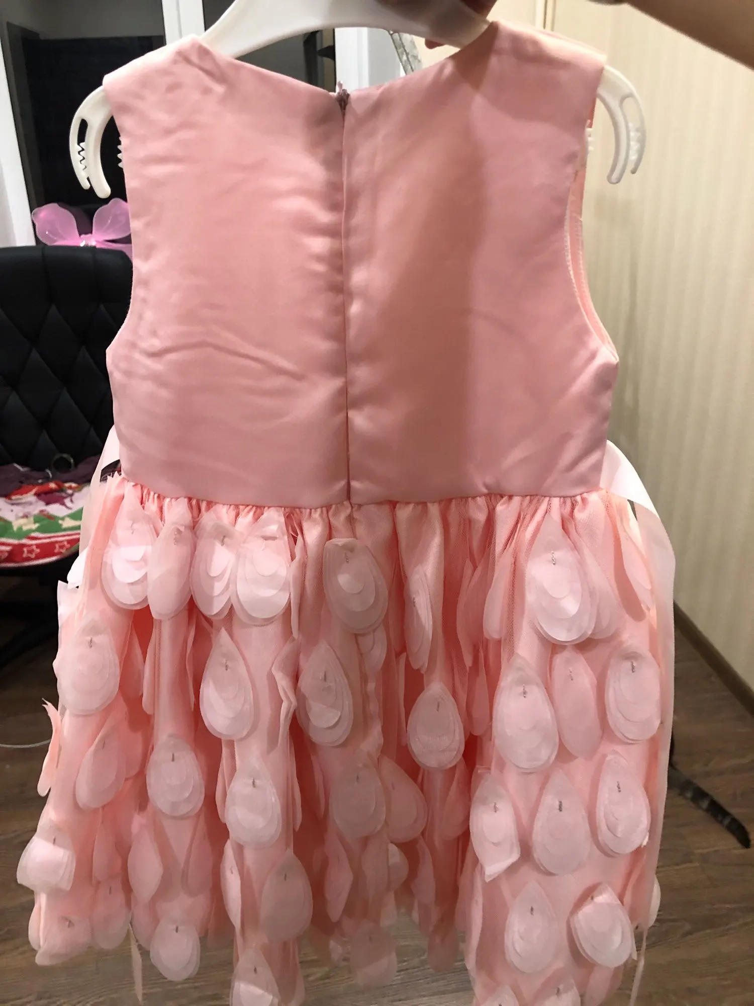 Платье по качеству нормальное. На рост ребенка 125 см, заказывала 8, подошло хорошо. Но сама модель сидит не очень (по крайней мере на худеньком ребенке). Смотрится как балахон.