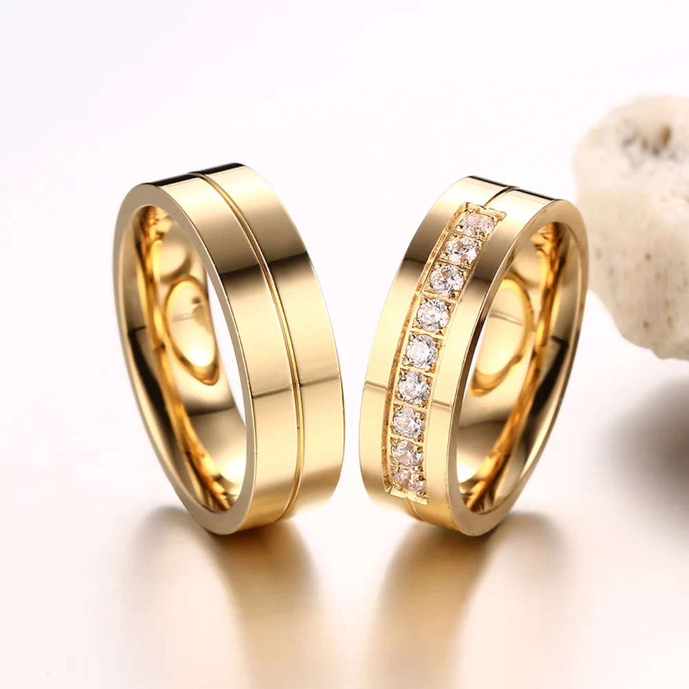 Парное кольцо с фианитом AAA +, Золотое кольцо для женщин и мужчин, титановое кольцо для влюбленных, обручальное кольцо из нержавеющей стали Utr8015