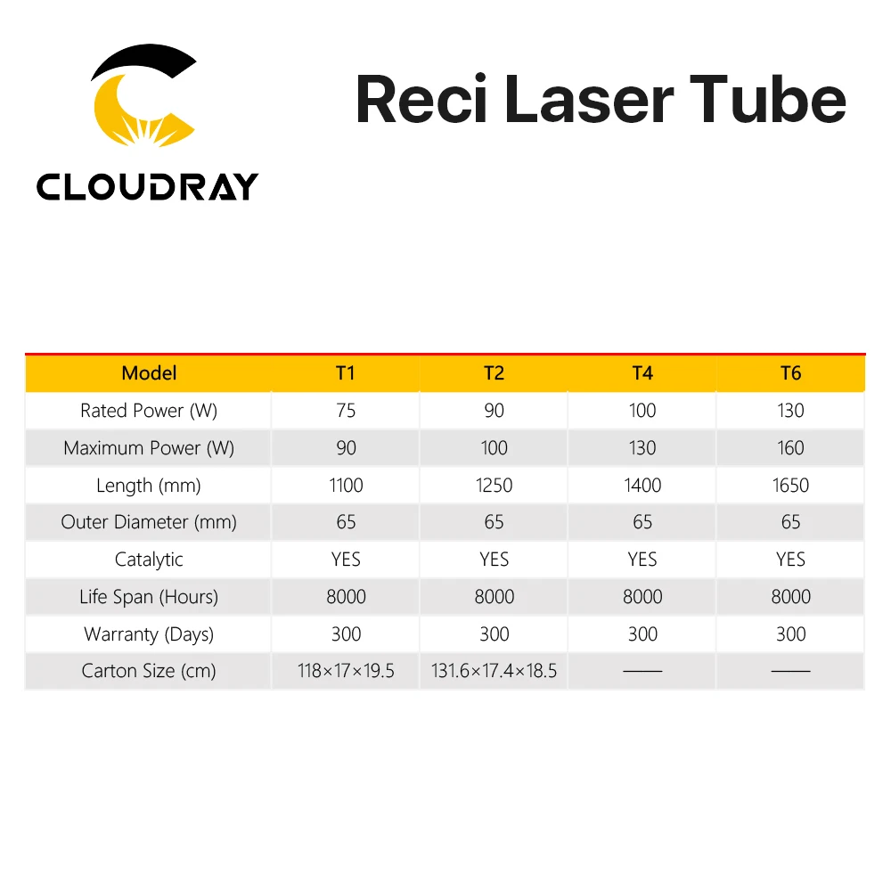 Cloudray Reci W6T6 130W CO2 лазерная трубка Деревянный чехол коробка упаковка диаметр 80 мм65 мм для лазерного гравировального станка CO2 S6 Z6