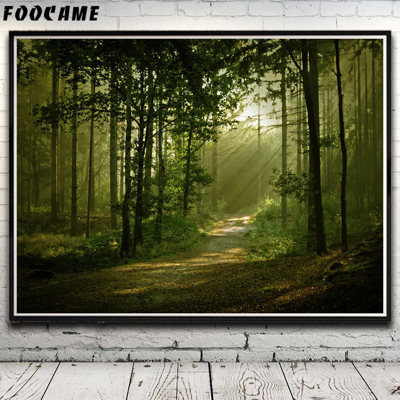 Природа деревья трава пейзаж Картина лесной пейзаж постер печать на холсте искусство Современная картина для дома украшение стены гостиной