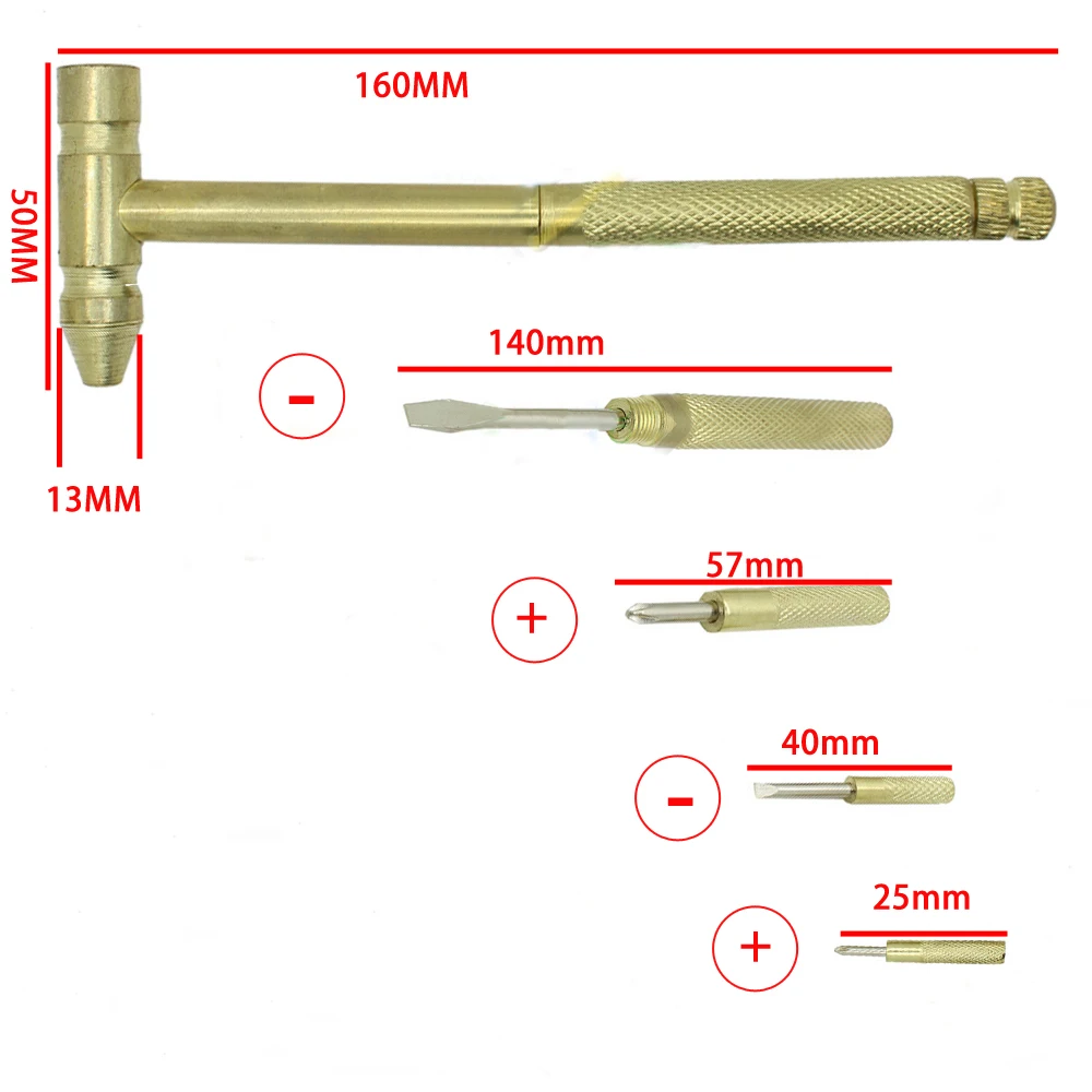 Новый 6 в 1 микро мини многофункциональный латунный молоток 3 вида отвертки карманные DIY Инструменты
